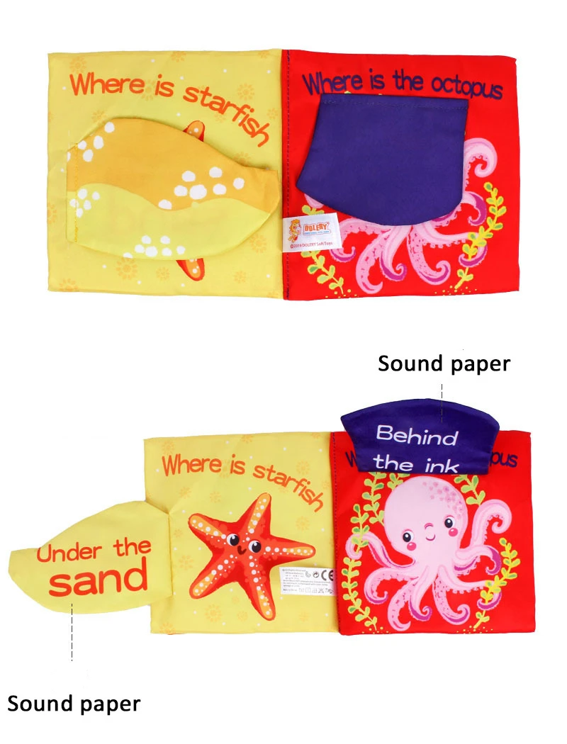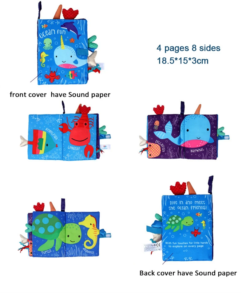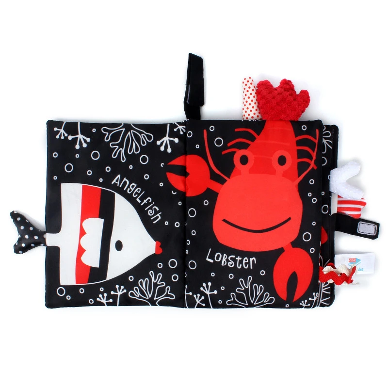 Тканевая Книжка-пазл для детей 0-12 месяцев, Обучающая книжка с рыбками для раннего обучения, развивающая обучающая игрушка для чтения с животными, ШК
