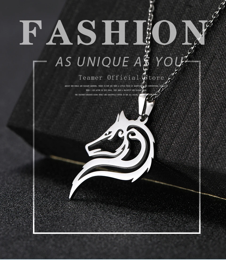 Снежный волк кулон колье пастбище животных ожерелье из нержавеющей стали для женщин мужчин панк повседневный стиль модные украшения