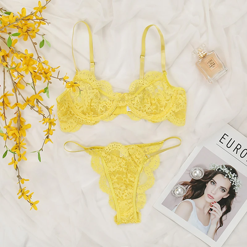 Комплект кружевного бюстгальтера VOTERBO, женское ультратонкое сексуальное нижнее белье, сексуальный прозрачный бюстгальтер и трусики на косточках, Дамское эротическое белье