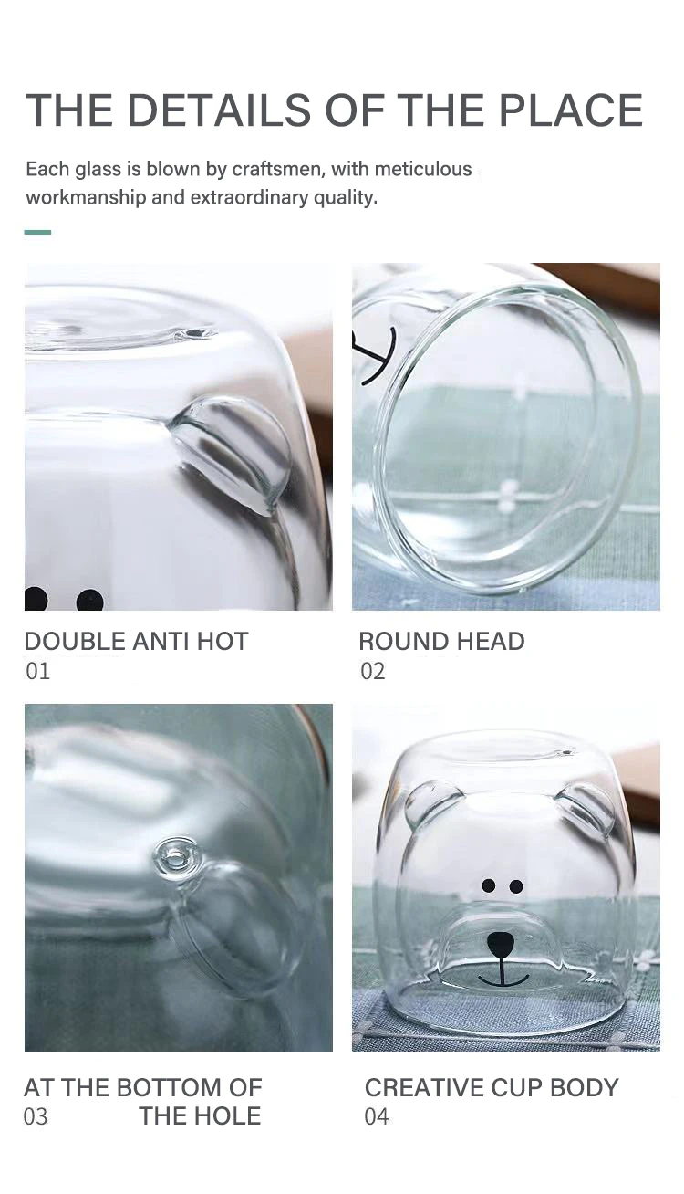 Стеклянные кружки, чашка для молока с двойными стенками, стеклянная кружка, медведь, кошка, собака, животное, двухслойная стеклянная чайная кружка, кофейная чашка, Рождественская кружка, подарочная посуда