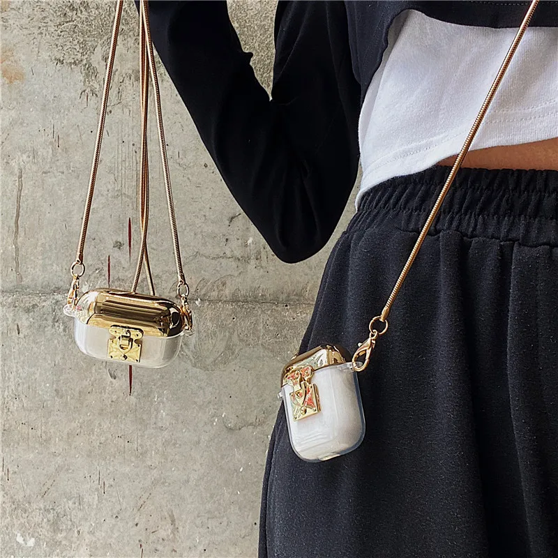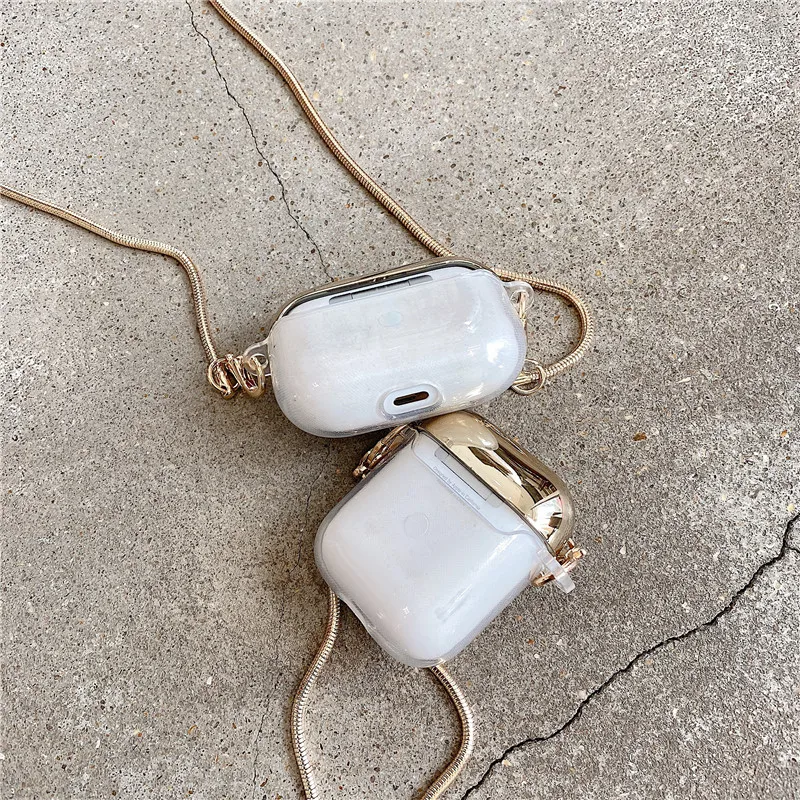 Брендовый прозрачный металлический ремешок через плечо, силиконовый чехол для гарнитуры Apple AirPods 1 2 Airpods Pro, аксессуары для Bluetooth наушников