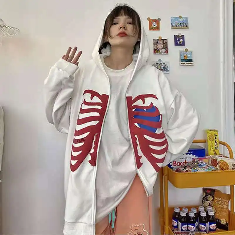 Модная женская одежда Y2K с принтом скелета, толстовка с капюшоном ...