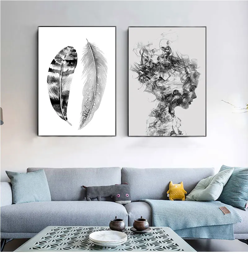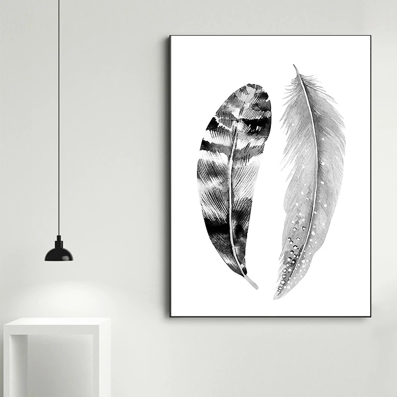 Скандинавские картины на холсте в скандинавском стиле с черно-белыми перьями, плакаты и принты, настенные художественные картины для украшения гостиной и дома
