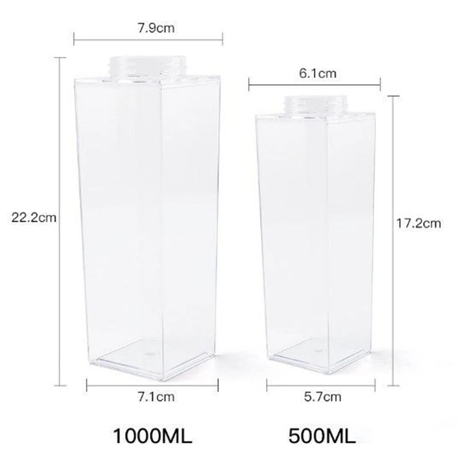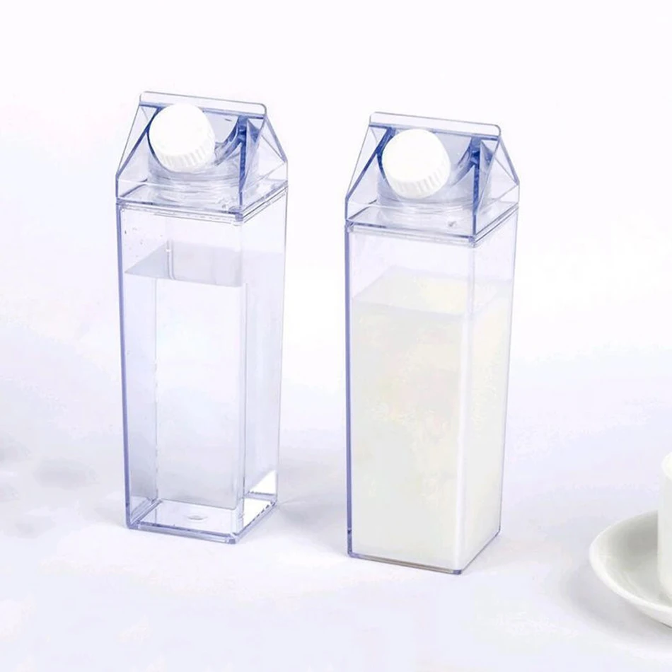 Прозрачная картонная бутылка для молока, 500 мл1000 мл, без БФА, прозрачная квадратная коробка для молока, бутылка для сока для спорта на открытом воздухе, кемпинга, путешествий
