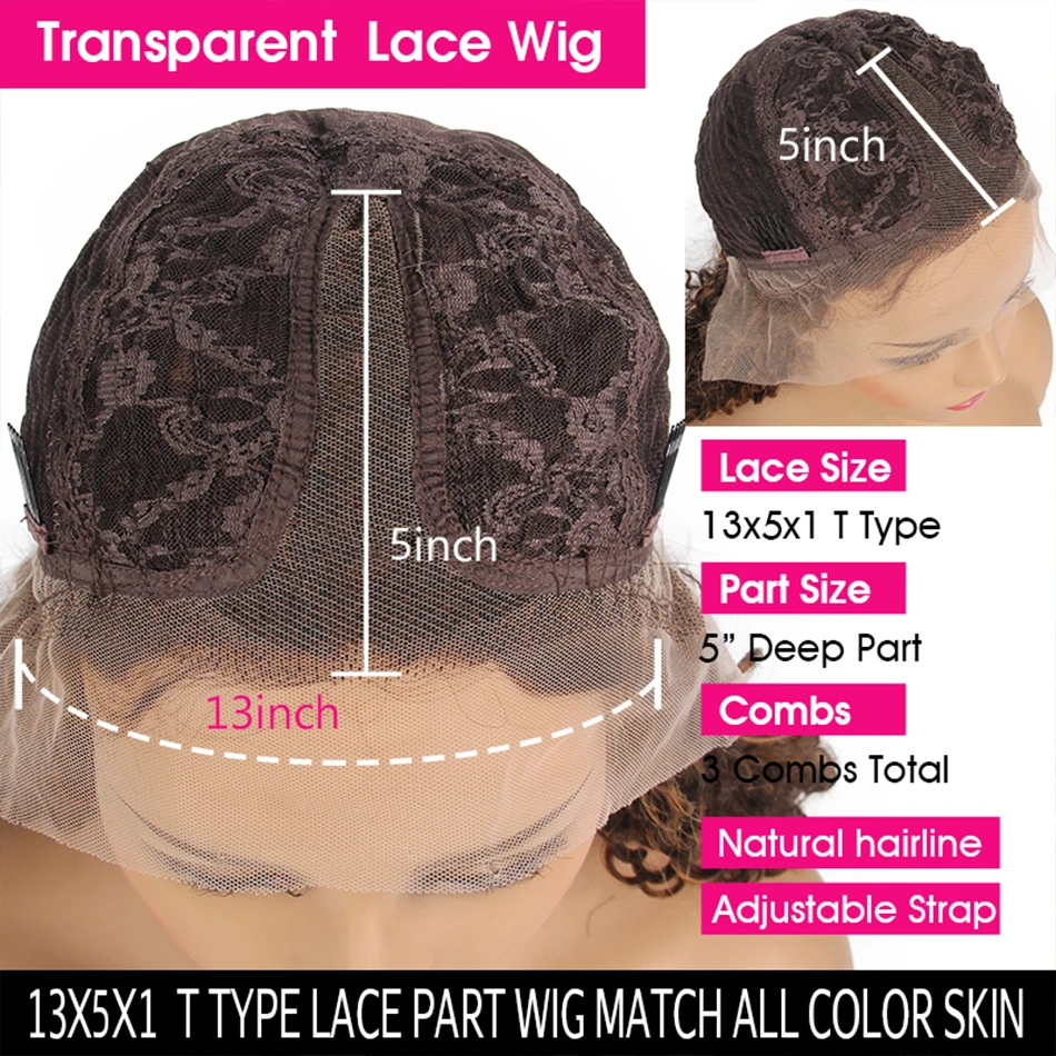 Короткий вьющийся парик Боб, парик с глубокой волной, T-образные па...