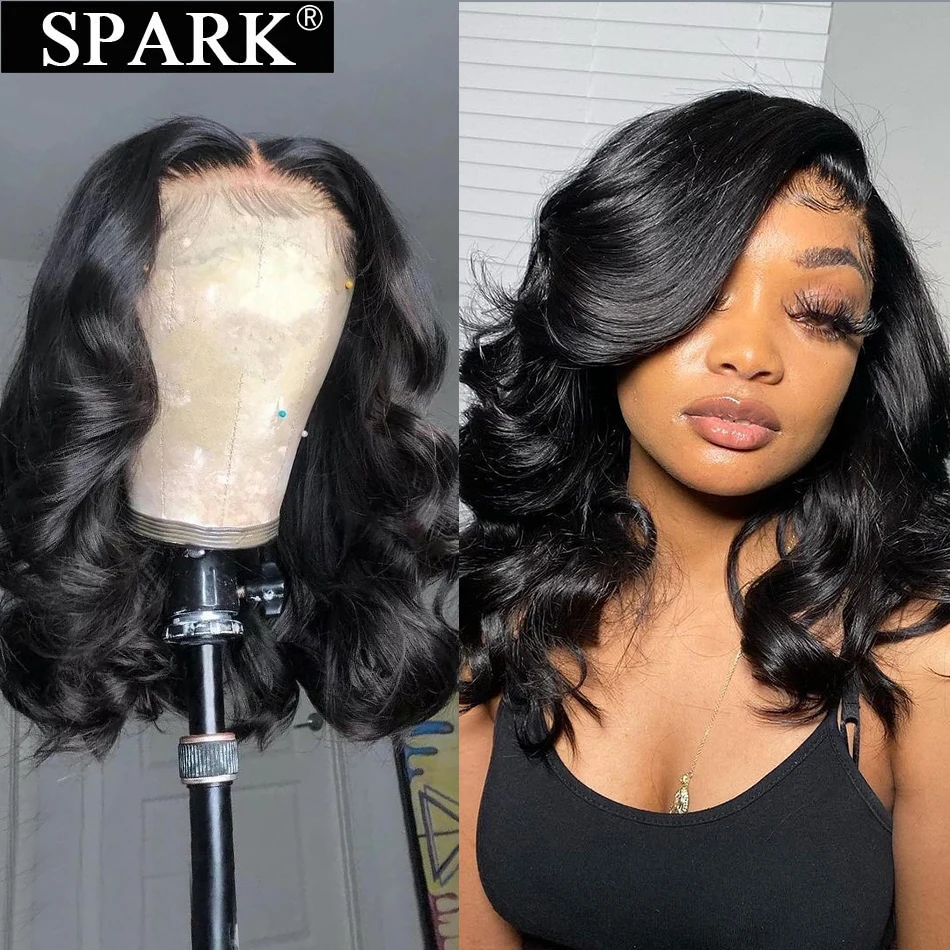 SPARK натуральный черный Боб Mogolian объемная волна 4x4 кружева за...