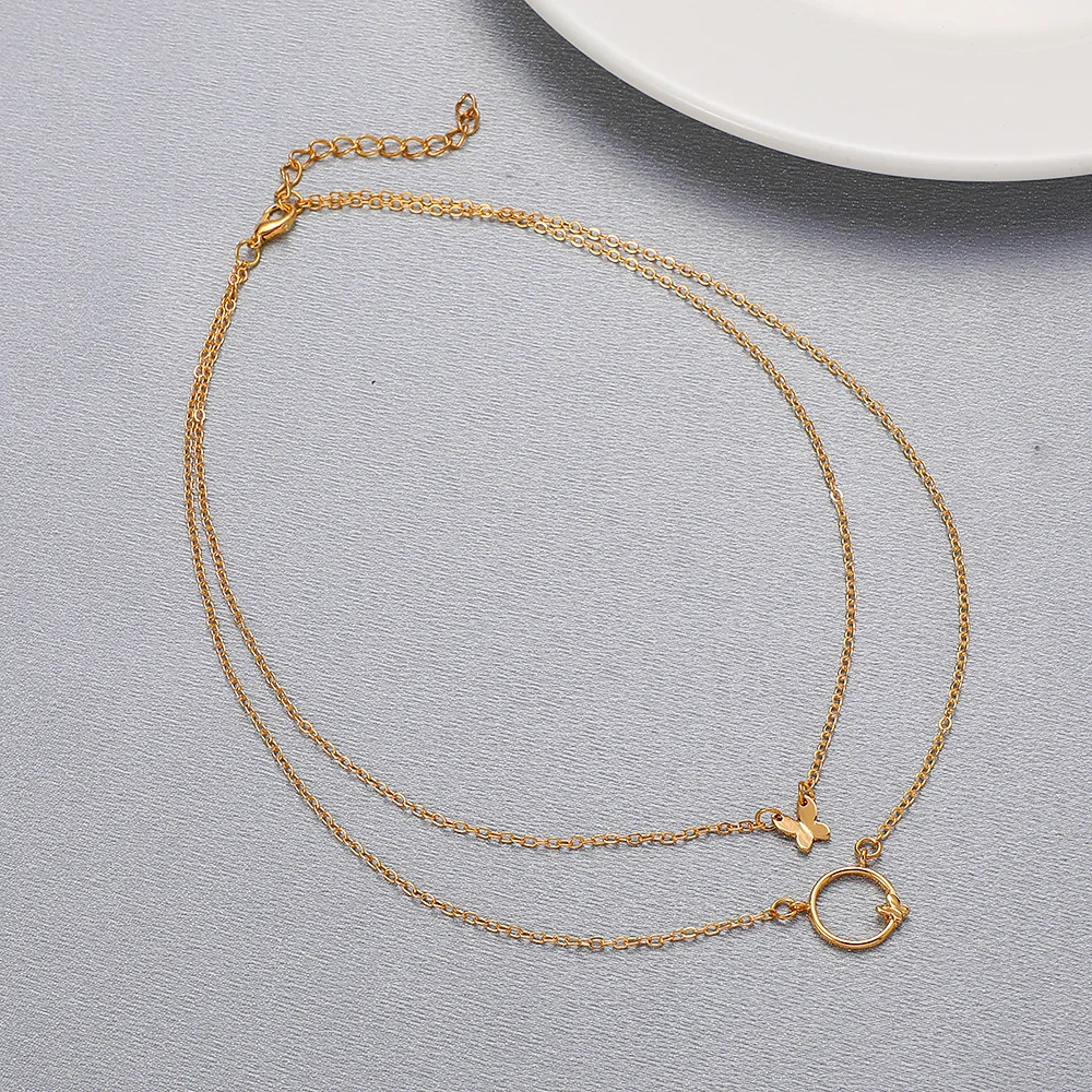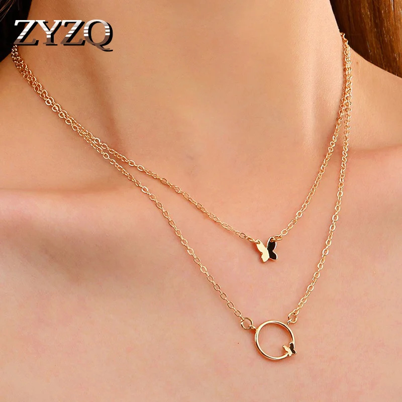 ZYZQ Новое корейское простое роскошное Двухслойное ожерелье с бабочкой для женщин милая цепочка до ключиц темпераментные ювелирные изделия 2021