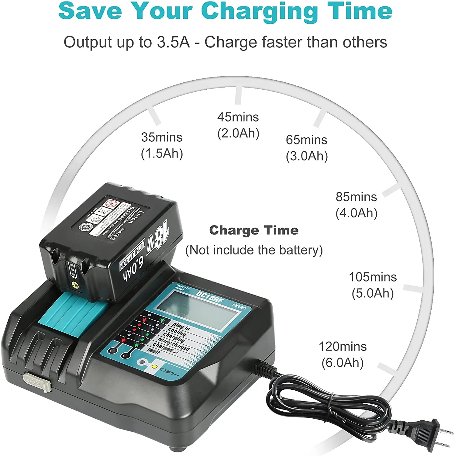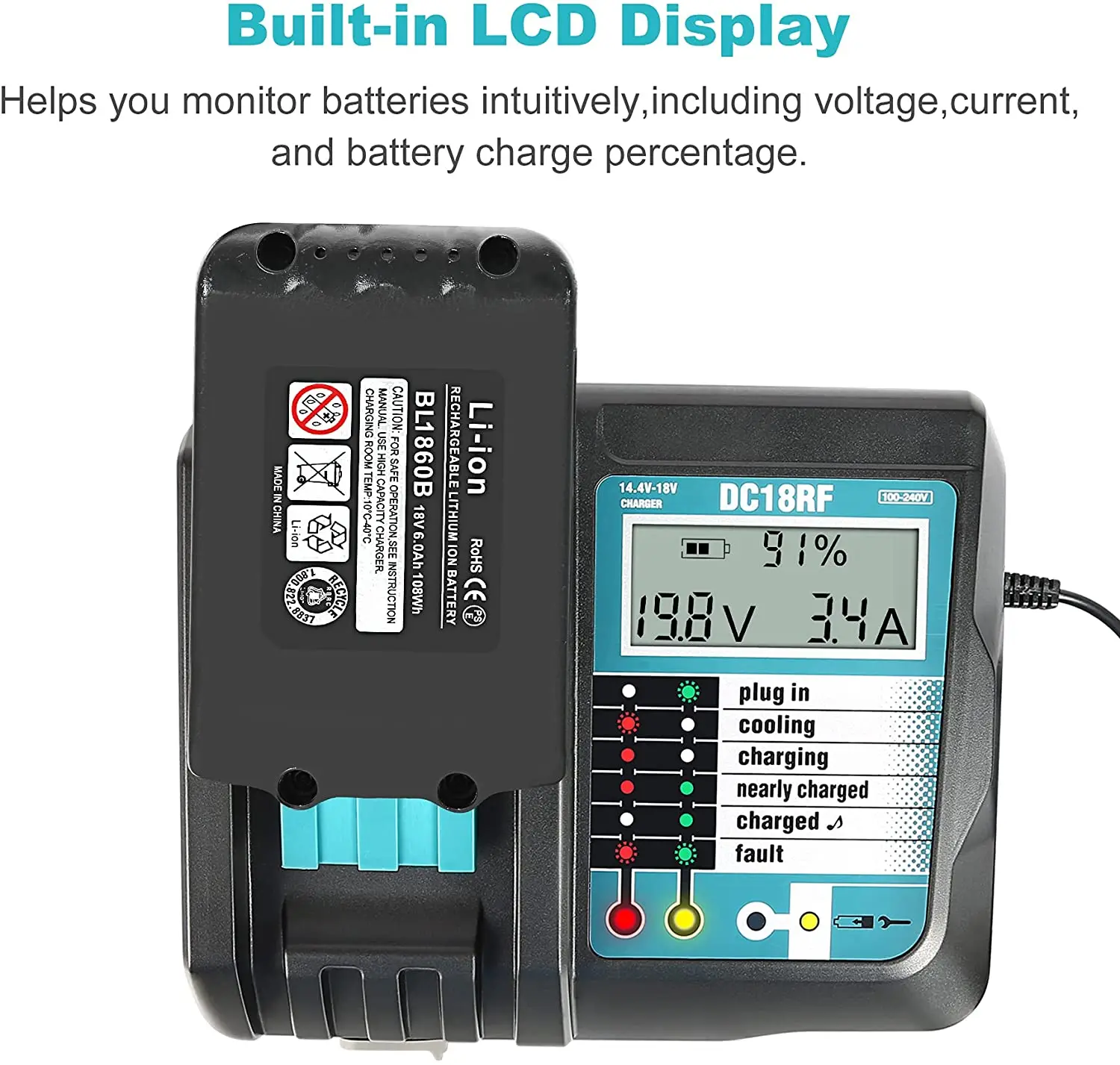 С зарядным устройством BL1860, перезаряжаемая батарея 18 в 6000 мАч...