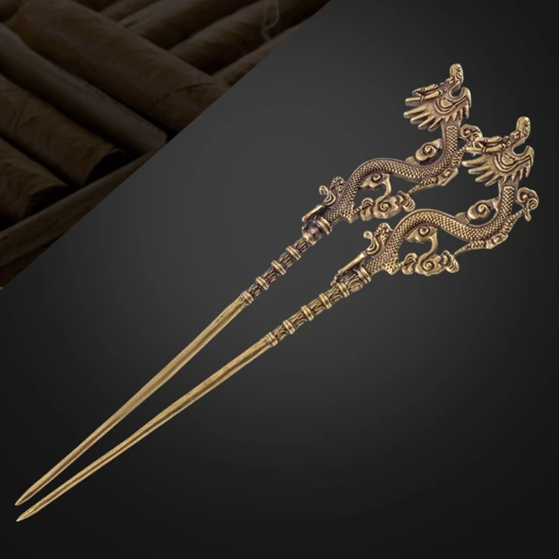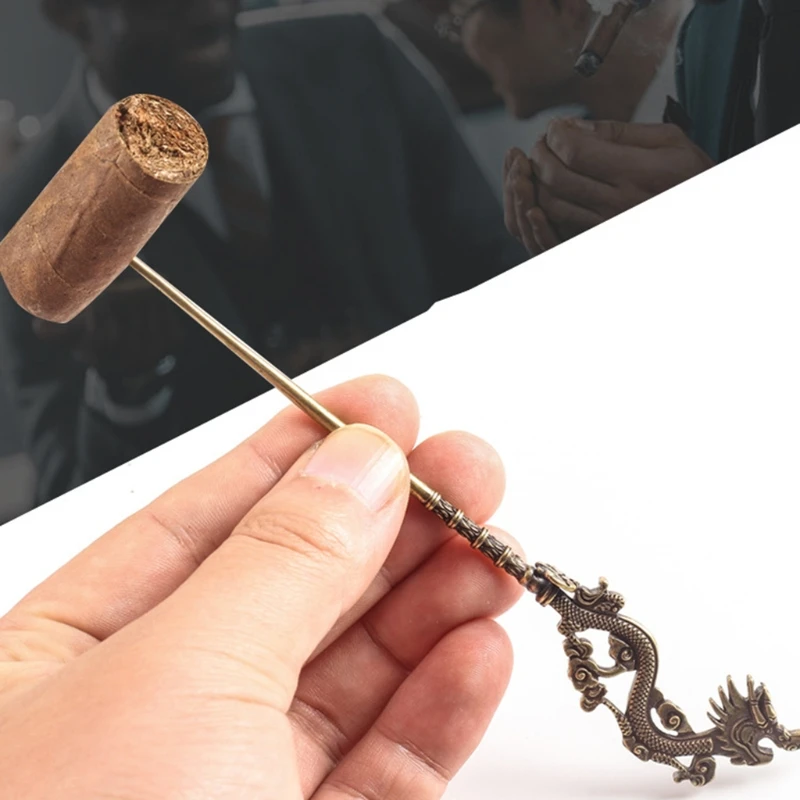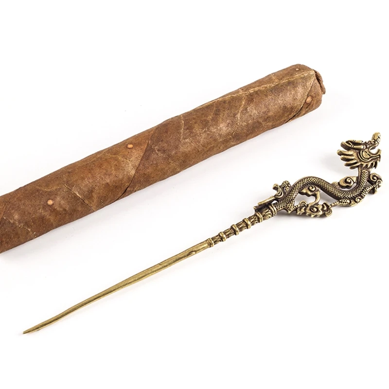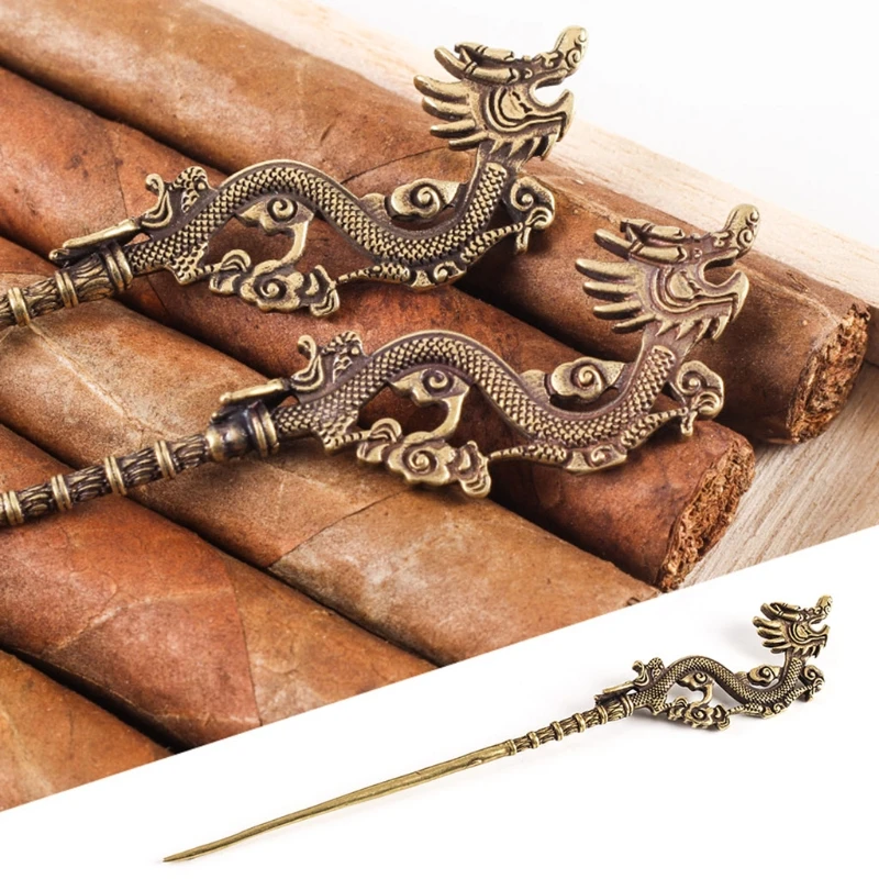Металлический инструмент для вытягивания сигар в стиле ретро с изображением дракона, портативный держатель для вытягивания и гравировки дыма