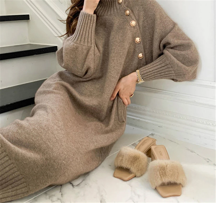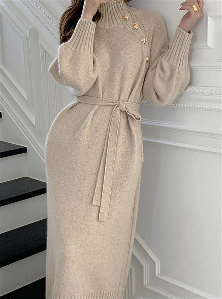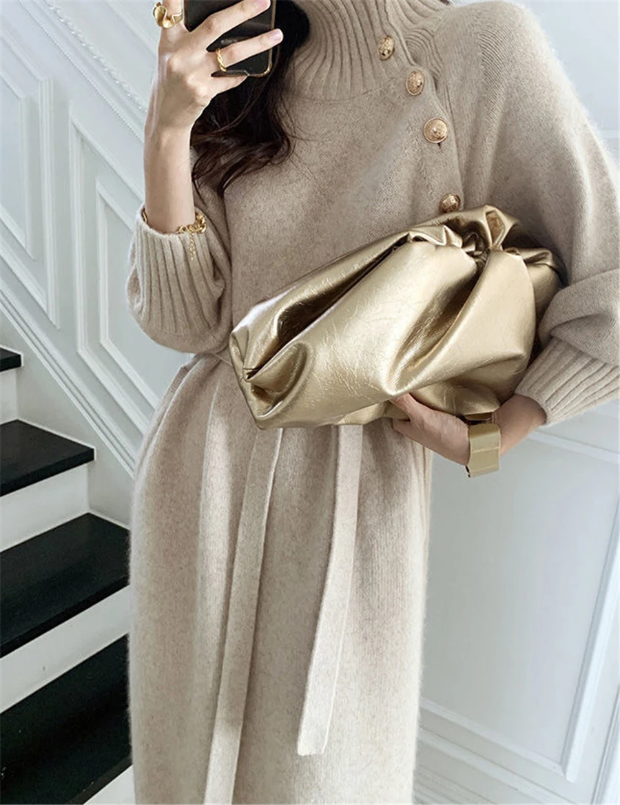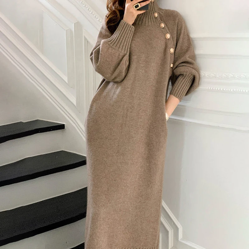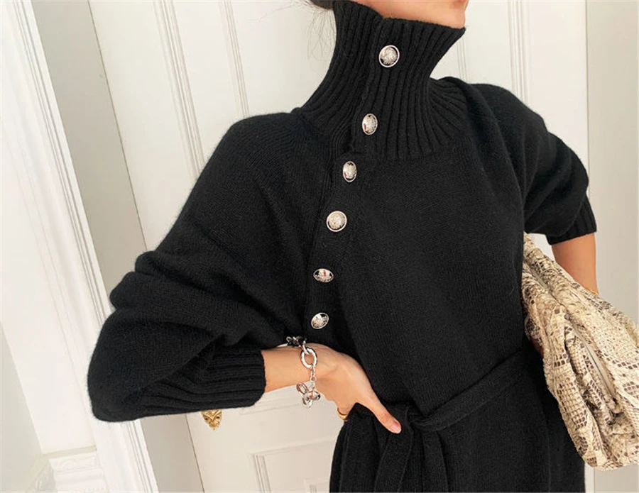 Женское трикотажное платье-водолазка, с длинным рукавом
