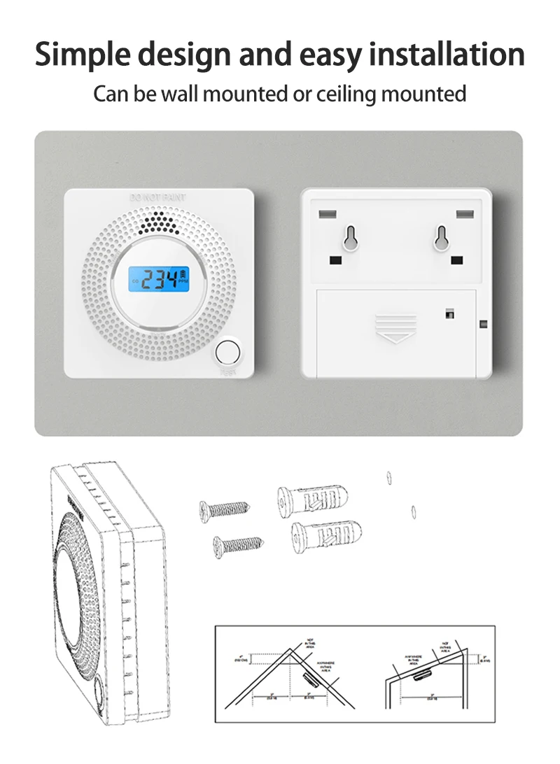 Это устройство с питанием от батареи Tuya WIFi приложение управления сигнализацией окиси углерода с передовым электрохимическим датчиком для домашнего использования. Обратите внимание, что данное устройство не обнаруживает дыма, тепла, пламени или других опасных газов.