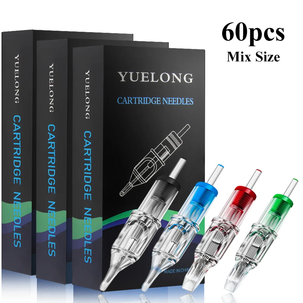 60 шт., смешанные размеры, иглы для тату, 3RL 5RL 7RL 9RL 5RS 7RS 9RS 5M1 7M1 9M1 7RM 9RM 9RM, круглый вкладыш, шейдер, картридж, иглы