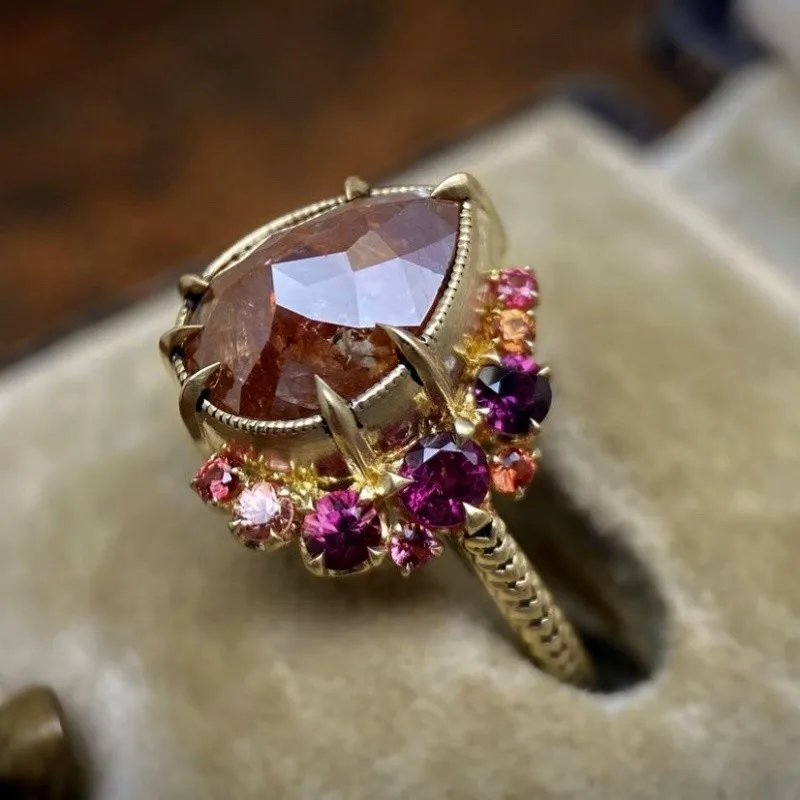 Женское кольцо из красного драгоценного камня с топазом в форме капли, необычное индивидуальное асимметричное обручальное элегантное кольцо, Женское кольцо