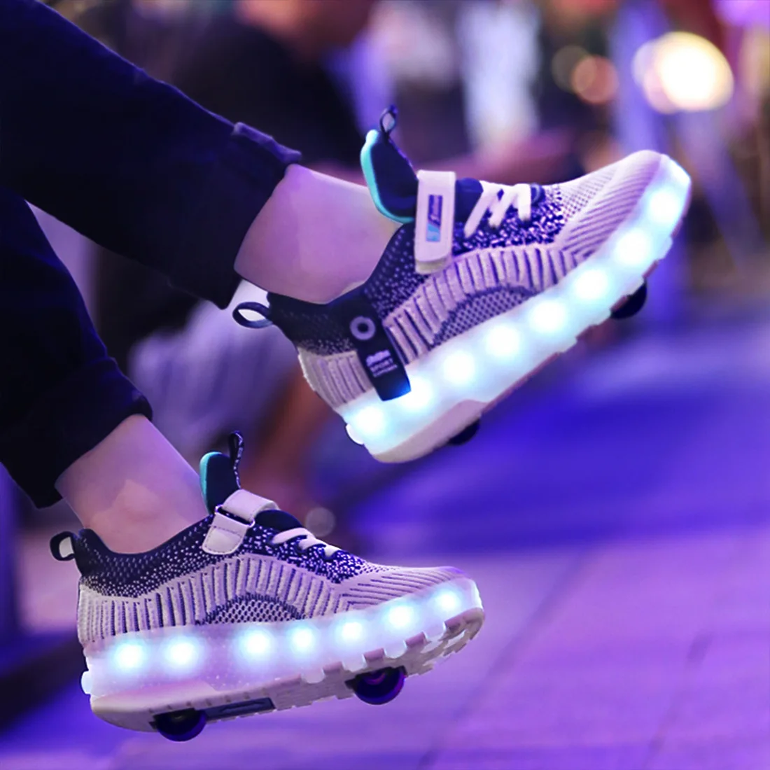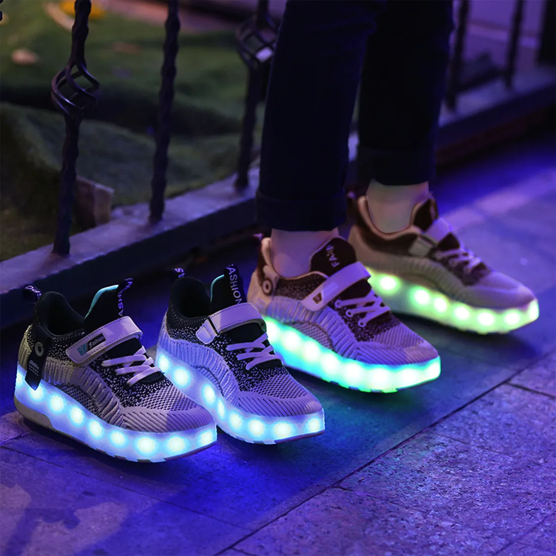Детские роликовые коньки, обувь со светодиодной подсветкой, мигасветильник свет, 2 колеса, кроссовки для катания на коньках, летающая обувь, многофункциональная легкая дышащая обувь для мальчиков и девочек