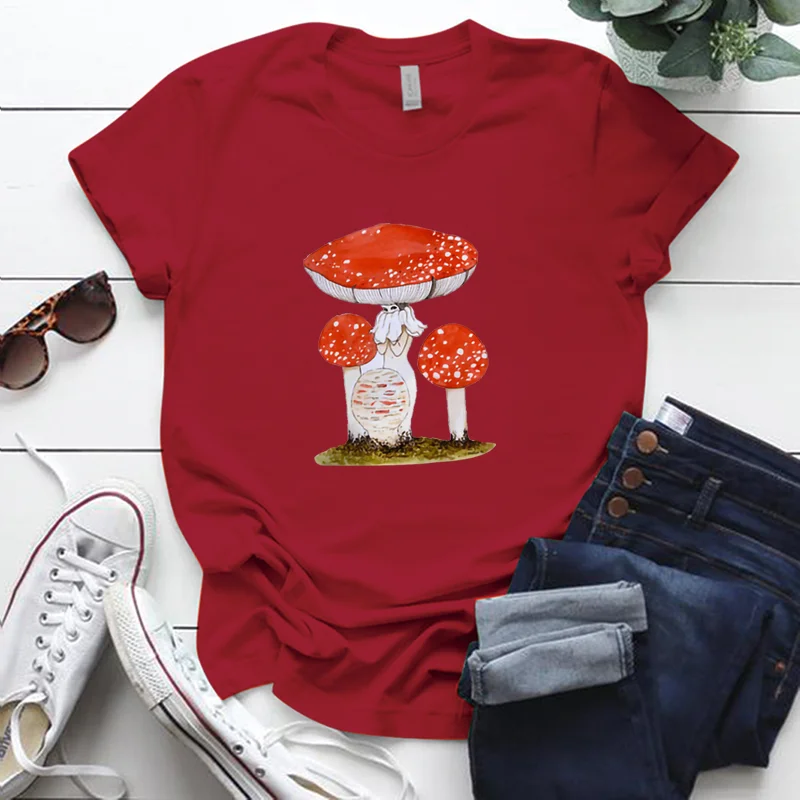Seeyoushy забавные красные женские футболки с принтом грибов, винтажные Блузы с коротким рукавом, топы, Damskie Poleras Mujer, модные женские