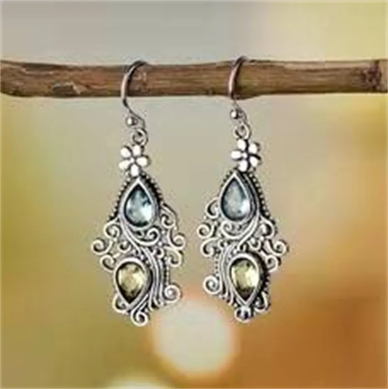 Винтажные висячие серьги в форме капли с синим и желтым цирконием д...