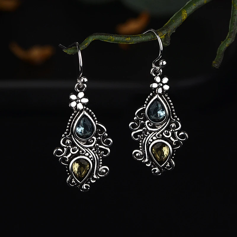 Серьги в форме капли, изысканные серьги в стиле ретро, элегантные серьги с морским голубым топазом, серьги для банквечерние, ювелирные подарки