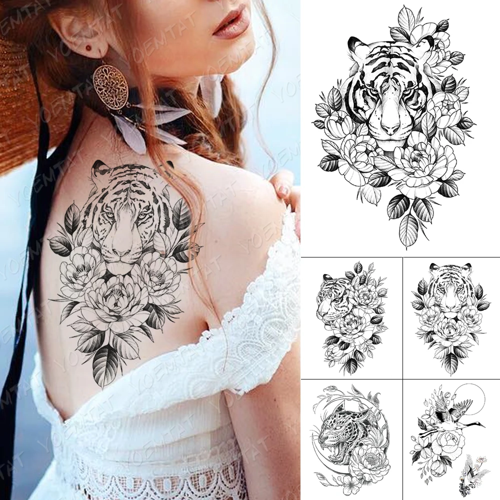 тату переводные на тело татуировки временные 2021,тату рукав,временное тату на руке,тату на руку мужские,клей для блеск тату женщин и мужчин,тигр, джагуа,Полуперманентная татуировка,спина,Плечо,цветы, искусство
