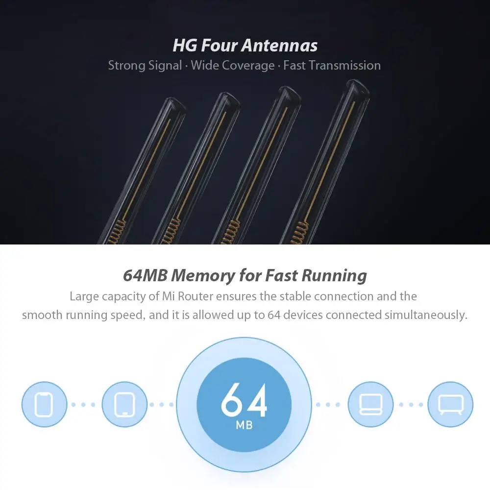Wi-Fi-роутер Xiaomi 4C, 64 RAM, 802,11 Bgn, 2,4G, 300 Мбитс, 4 антенны