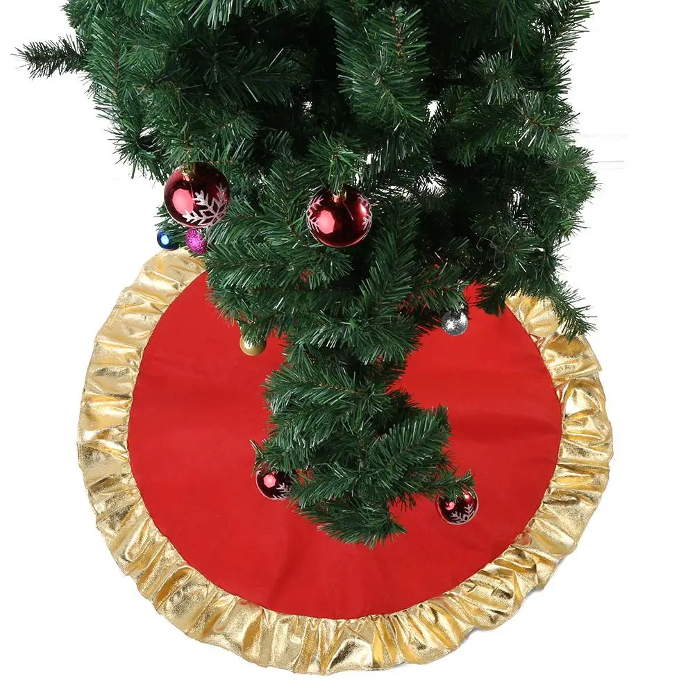 Красная юбка в виде рождественской елки 90 см, фартук с оборками по краям для елки, золотистая ткань высокого качества, новогодний домашний декор, Рождество