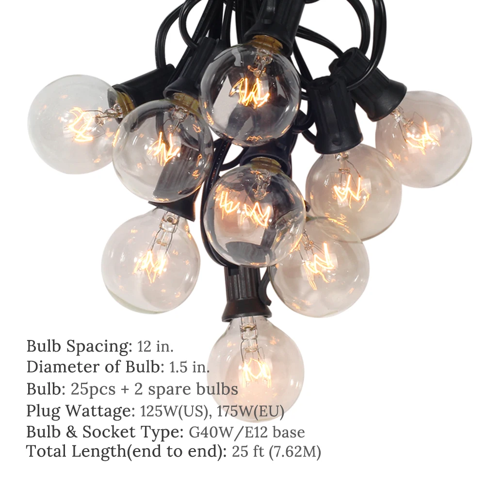 2020 Новый 25Ft G40 Глобус лампы гирлянды с 25 прозрачными шариками...