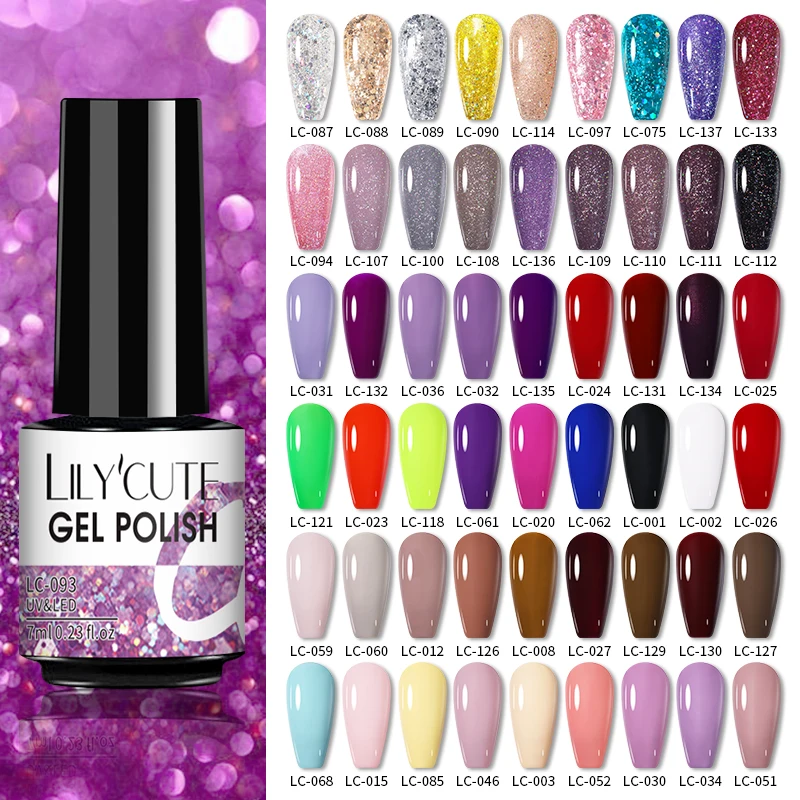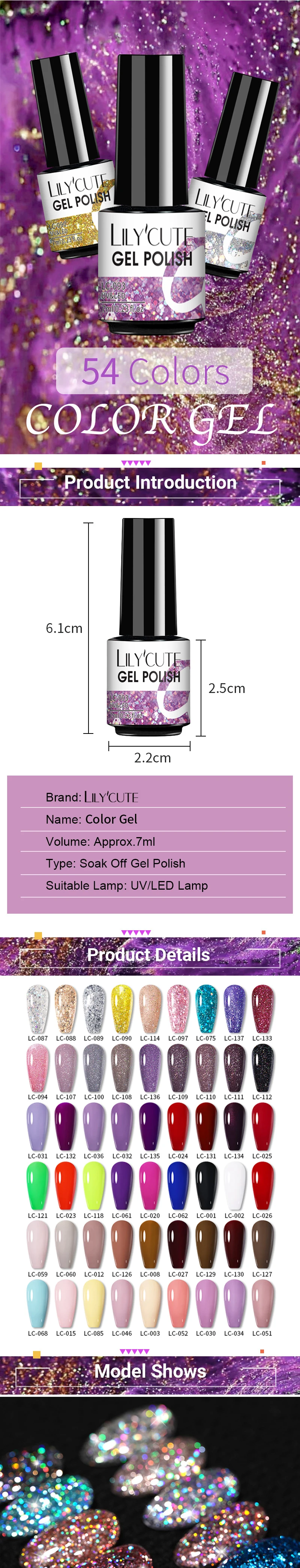 Гель-лак для ногтей LILYCUTE 7 мл, блестящий Полупостоянный лак с блестками, Гель-лак, базовое и верхнее покрытие, УФ светодиодный Гель-лак для ногтей