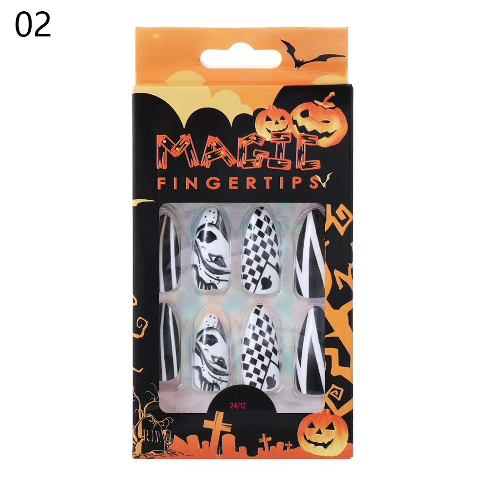 24 шт.кор. накладные ногти на шпильке в стиле Хэллоуин съемные носи...