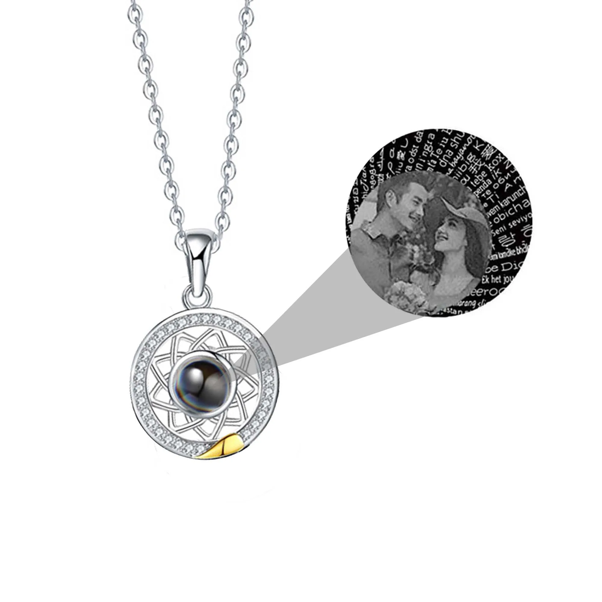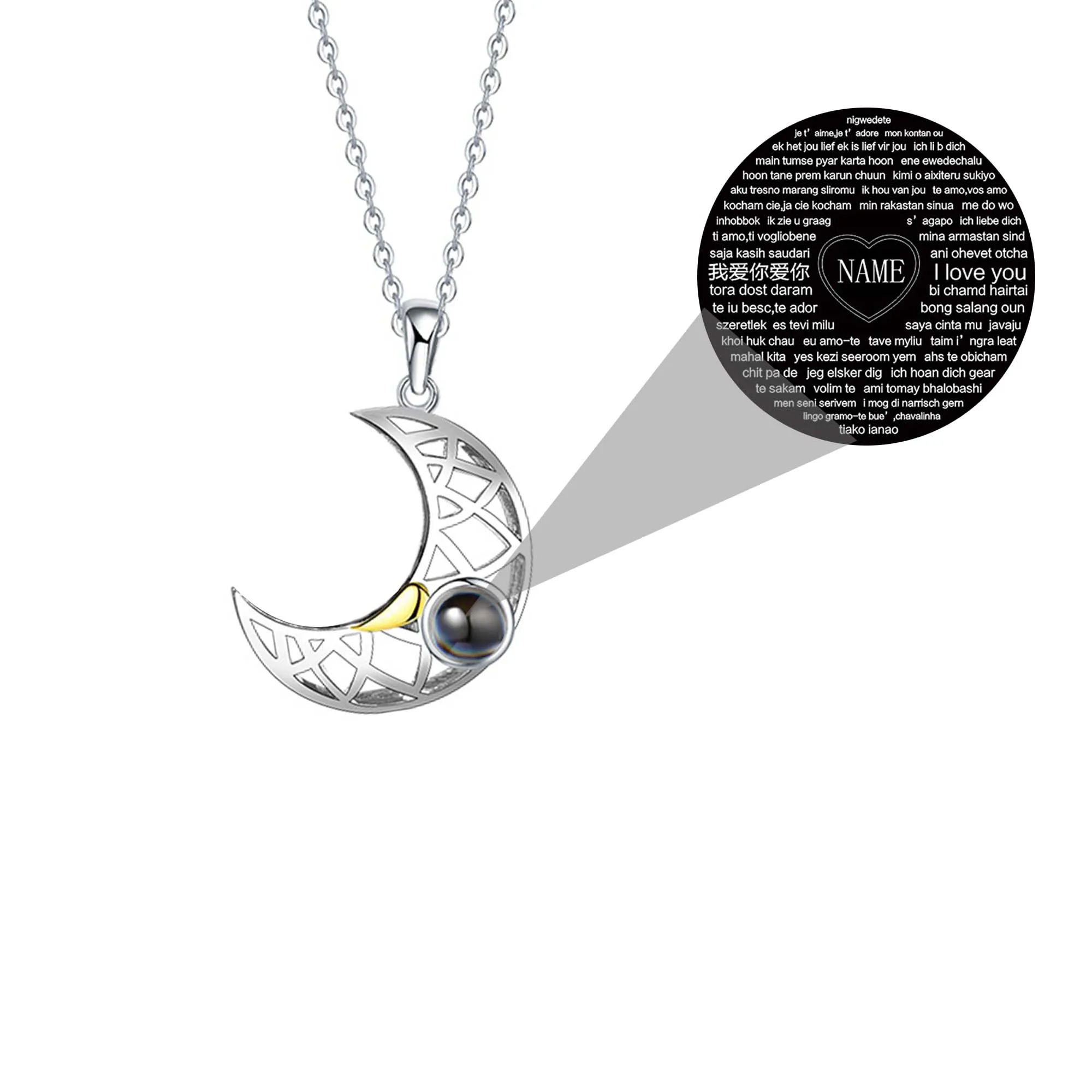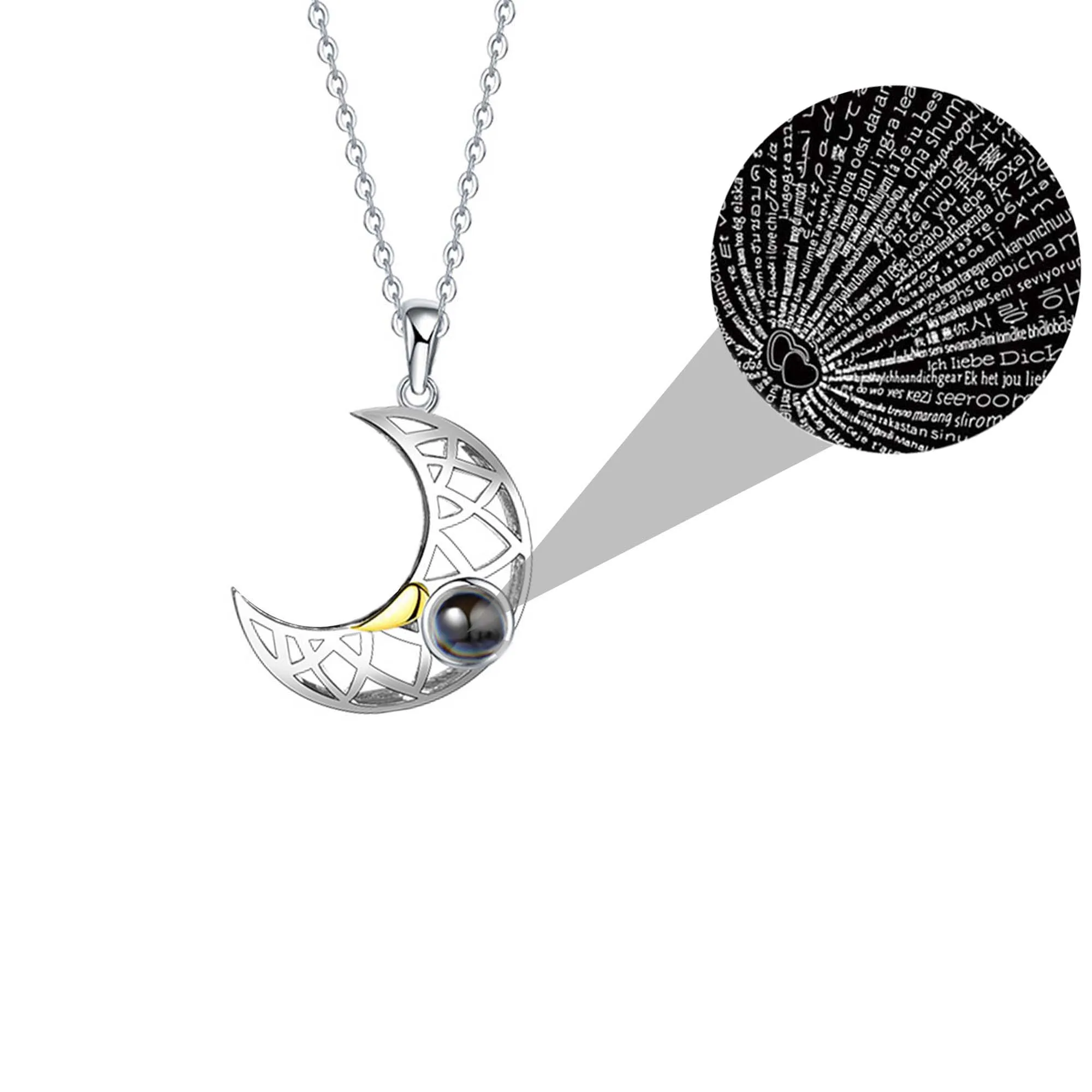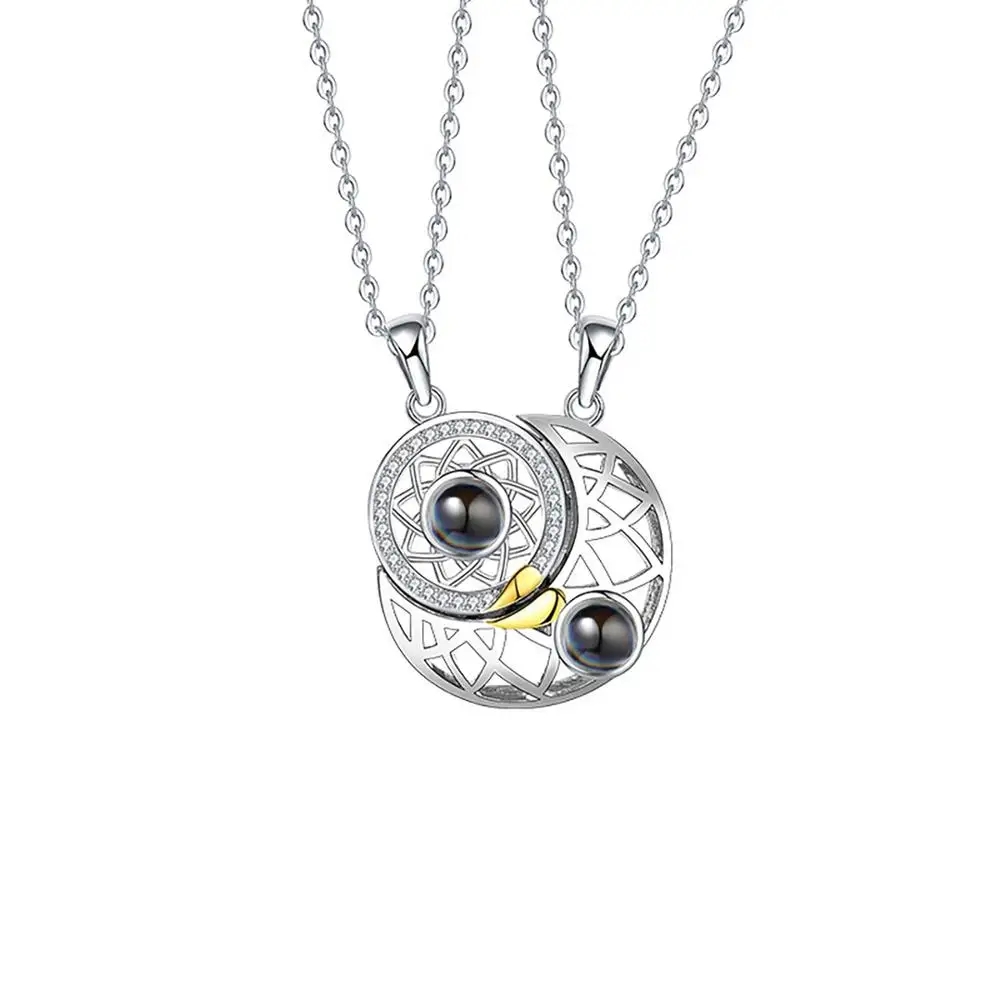 Солнце Луна Форма Пара Ожерелья на заказ украшения на день рождения, свадьбу 100 языки я люблю тебя проекционный кулон ожерелье Подарки