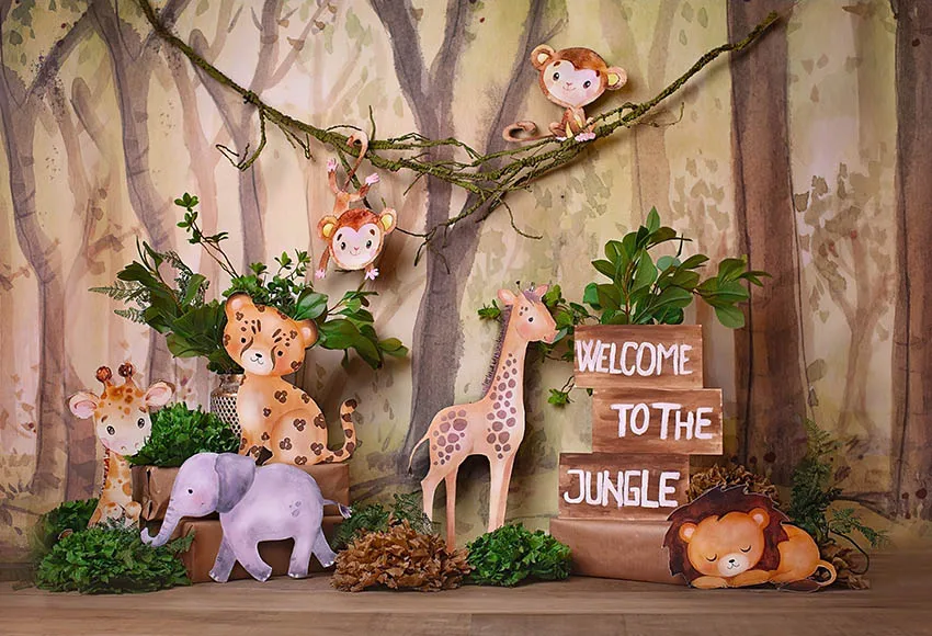 Фон для студийной фотосъемки с изображением леса, шпильки, мальчика, сафари, дня рождения, обезьянки, льва