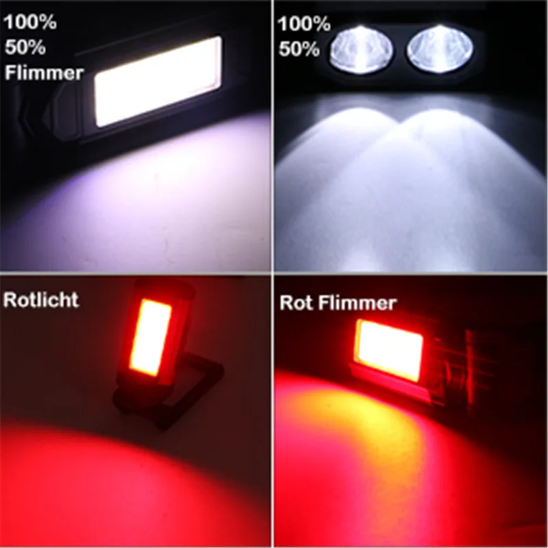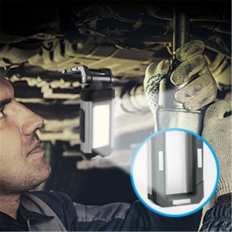 Особенности:1. Высококачественный и водонепроницаемый корпус из АБС-пластика и алюминиевого сплава обеспечивает чрезвычайно высокую прочность. Светильник, вес и портативность, Идеальный открытый/внутренний рабочий светильник в работе.2. Высокая яркость. Состоит из супер яркого XPE/COB светильник, 5 режимов светильник Управляется 1 кнопкой, переключатель свободно, легко работать.3. Светильник ing режимы: яркий белый светильник (XPE); Сильный белый светильник (COB); Слабый белый светильник (COB); Красный светильник (COB); Красная вспышка (COB)4. Крюк и магнитный дизайн, можно прикрепить к любой металлической поверхности или повесить. Удобно использовать во время работы.5. Встроенный литиевый аккумулятор емкостью 2200 мАч, usb-зарядка, удобно брать. Может питаться от powerbank или подключаться к любому адаптеру для зарядки. С выходным портом также может использоваться как банк питания.6. Широко используется: кемпинг, туризм, рыбалка, барбекю, ремонт автомобилей, грузовик, магазин, исследования и многое другое. Характеристики:Материал: алюминиевый корпус + АБС-пластик + нейлонЦвет корпуса: красный/серыйВес: 176 гРазмер: 103*55*38 ммСветильник источник: XPE/COBСветильник Цвет: белый; Красный (удерживайте переключатель в течение 3 секунд, чтобы активировать)Цветовая температура: 6500-7000Люмен: XPE (передний светильник) 3WLED 180 лмCOB (боковой светильник) 5WCOB 400 лмСветильник ing режимы: яркий белый светильник (XPE); Сильный белый светильник (COB); Слабый белый светильник (COB); Красный светильник (COB); Красная вспышка (COB)Источник питания: 2200 мАч литиевая батареяСпособ зарядки: зарядка через USBВремя зарядки: 3 часаВремя использования: 3-8 часовКласс водонепроницаемости: IP64 Упаковочный лист:1 * Рабочий светильник1 * USB кабель