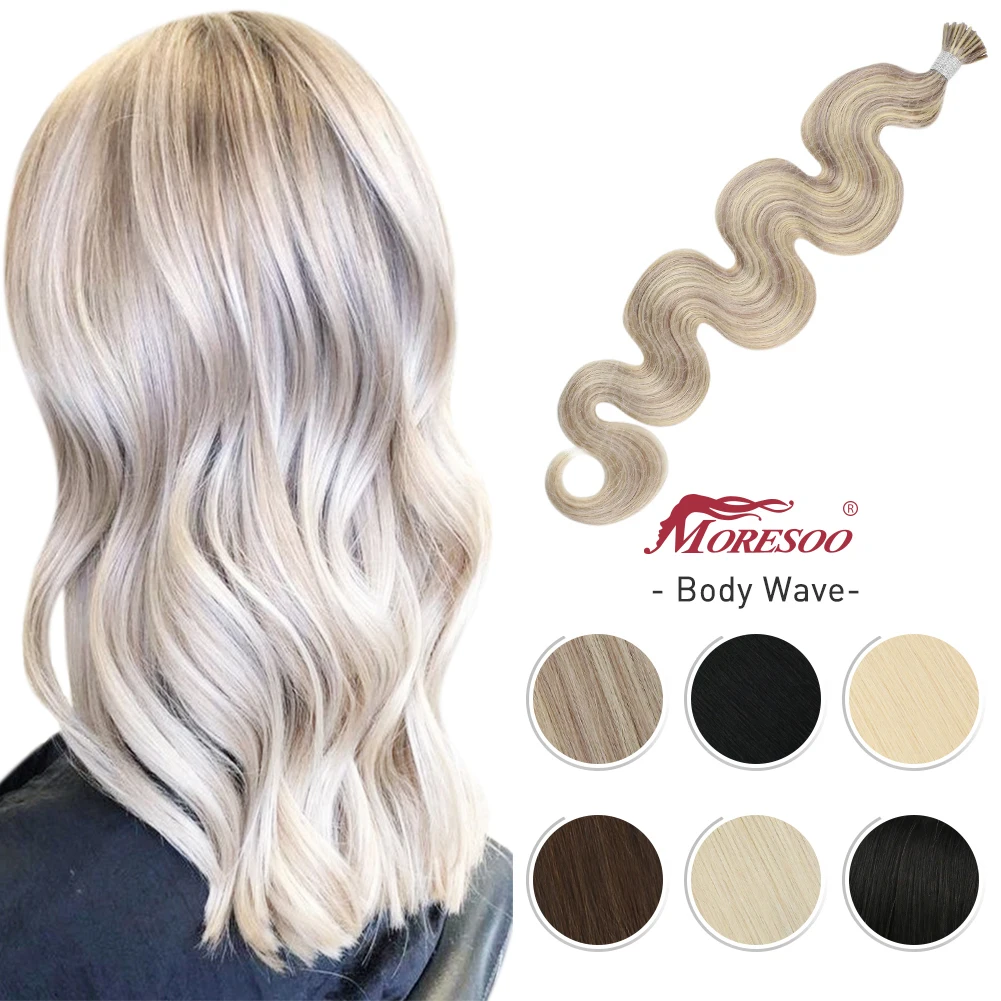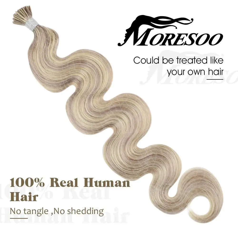 Наращивание волос Moresoo Itip, аппарат для наращивания человеческих волос, волнистые, предварительно скрепленные, 50 г50 с, холодное слияние, настоящие волосы для наращивания, кератин