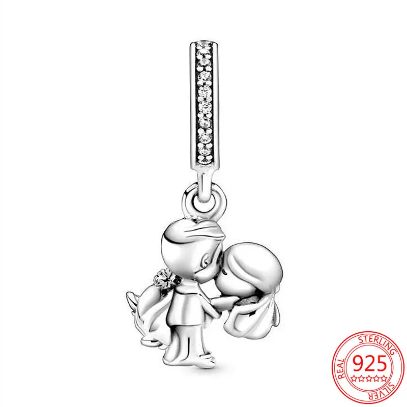 Женские Ювелирные изделия из стерлингового серебра S925, подвески-шармы для замужественных пар, подходят для оригинальных браслетов Pandora 3 мм, модные бусины сделай сам в подарок