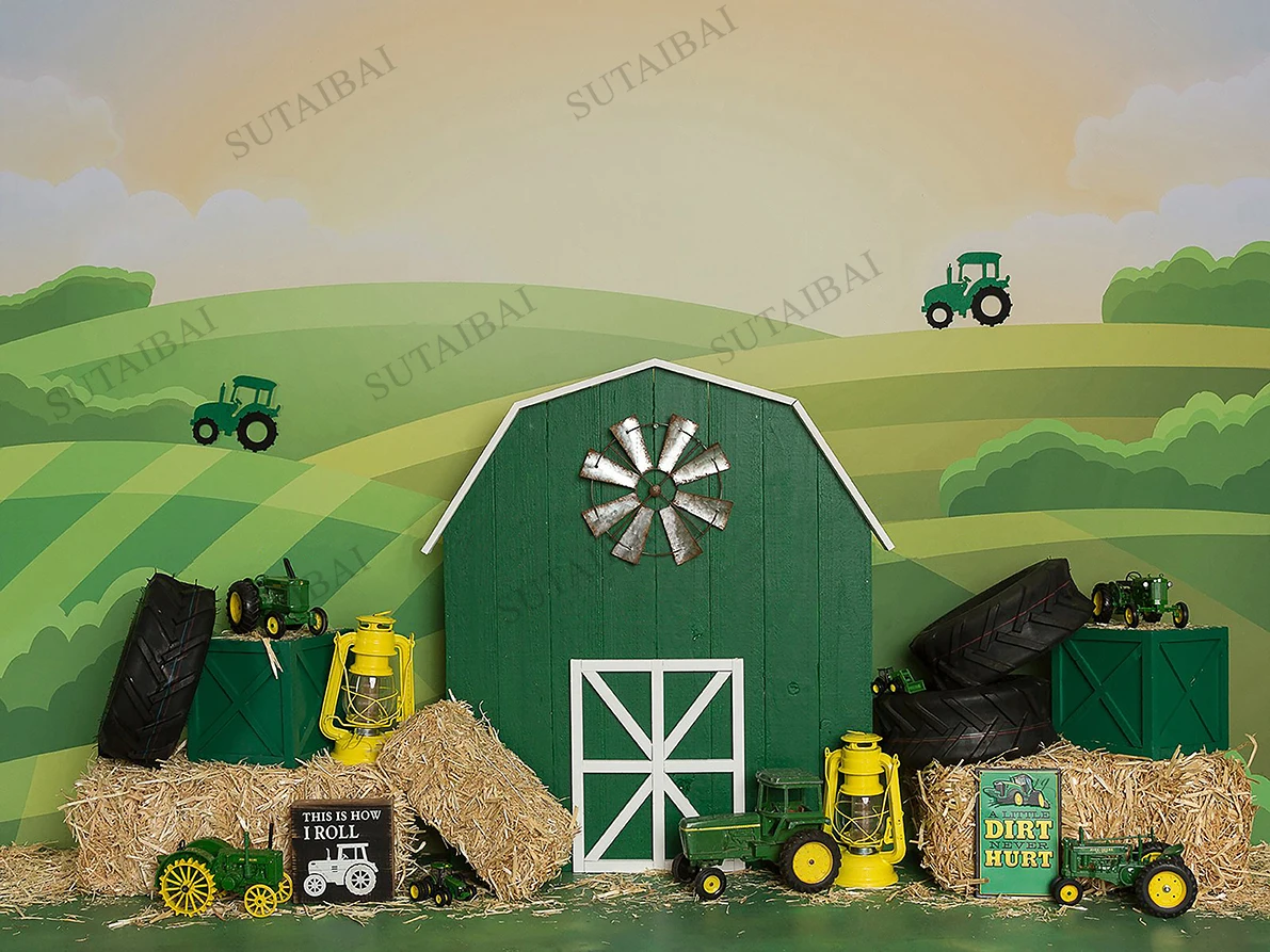 Фон для фотосъемки с изображением зеленого трактора фермы для 1-го дня рождения мальчика фон для фотосъемки фермы воздушный шар флажки украшение для вечерние баннер