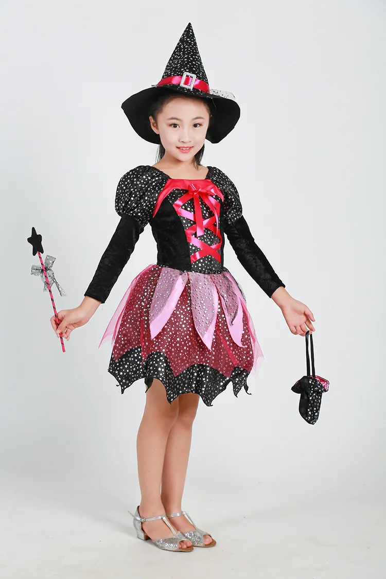 Детский Рождественский костюм ведьмы с шапкой и метлой на Хэллоуин