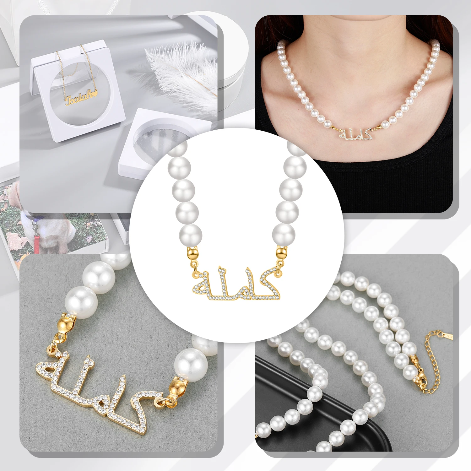 Индивидуальное ожерелье с арабским именем, персонализированная жемчужная цепочка, кулон из циркония с арабским кристаллом, ювелирные изделия из нержавеющей стали для женщин