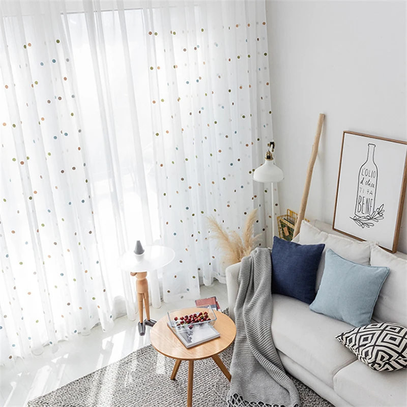 Шторы с вышивкой для гостиной, прозрачные Занавески в горошек для д...