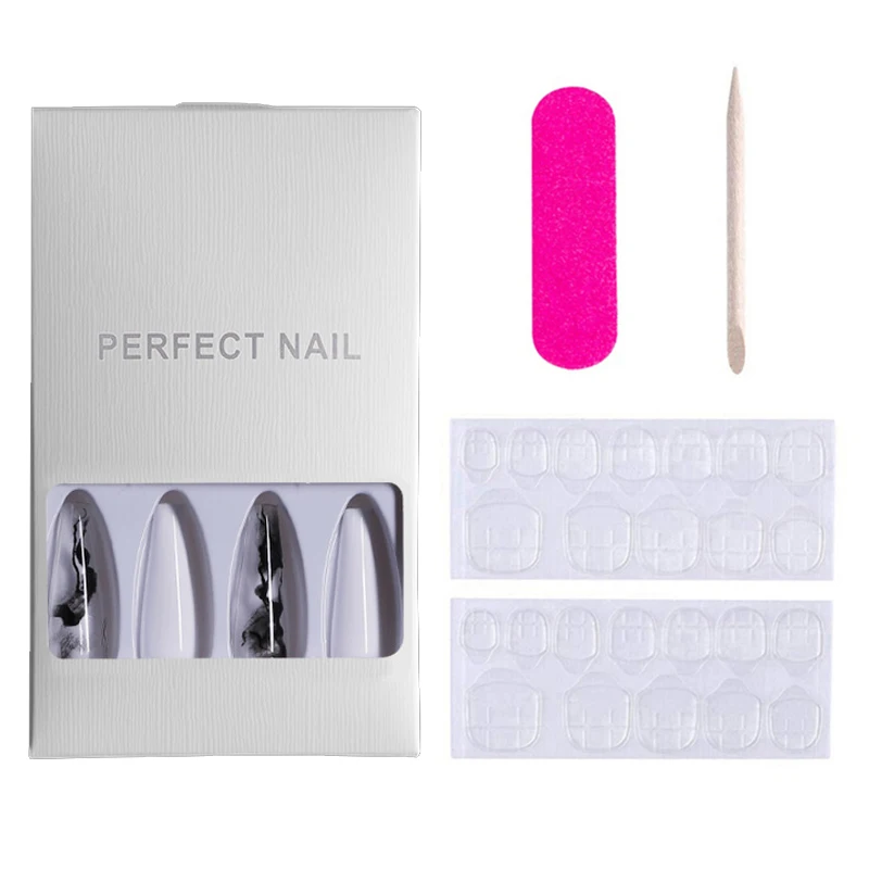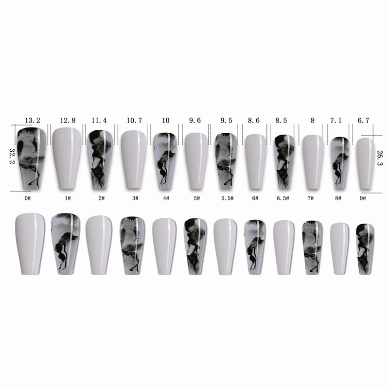Обычная стильная абстрактная чернильная живопись, смешанный белый сверхдлинный пресс для накладных ногтей Fakenails SM14210803