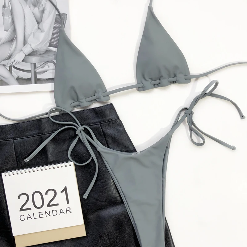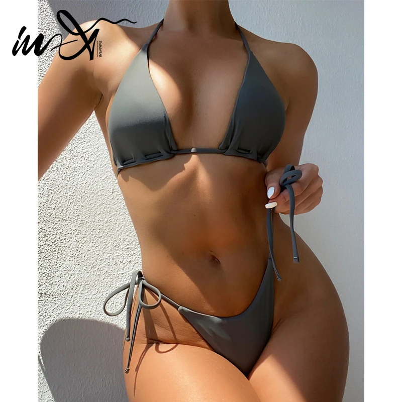 Бразильские Микро Бикини In-X, 2021, женский купальник со шнурком, Женский треугольный купальник с высоким вырезом, комплект из 2 предметов, купальный костюм