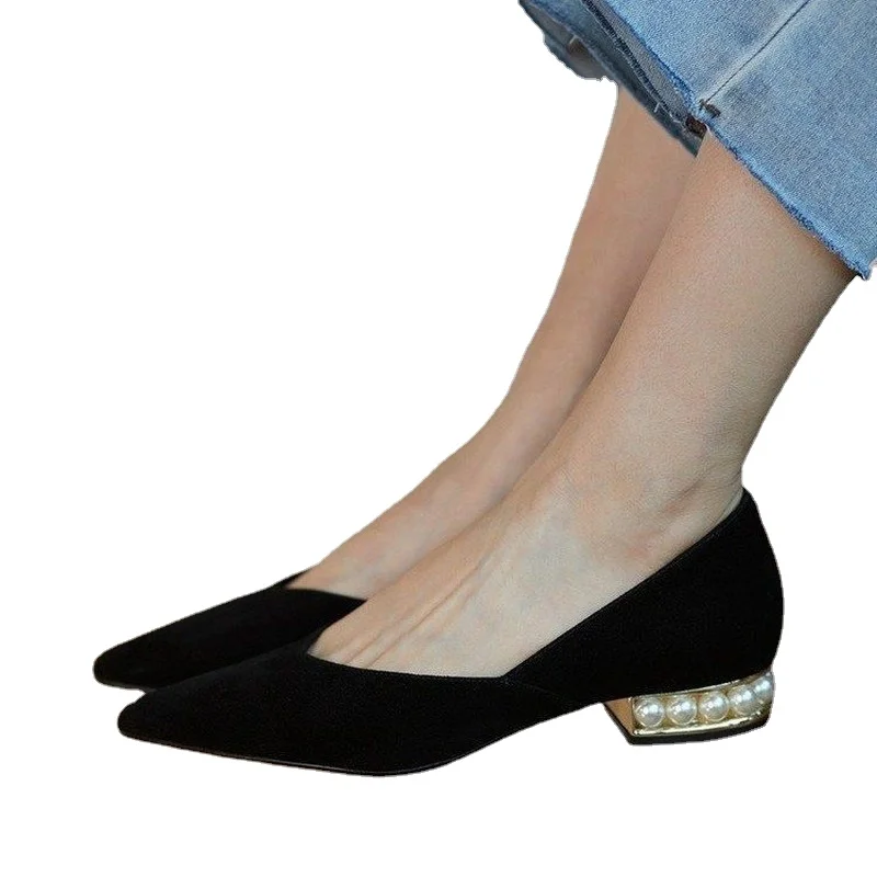 Туфли-лодочки женские с жемчужинами, модная обувь на каблуке, замша...