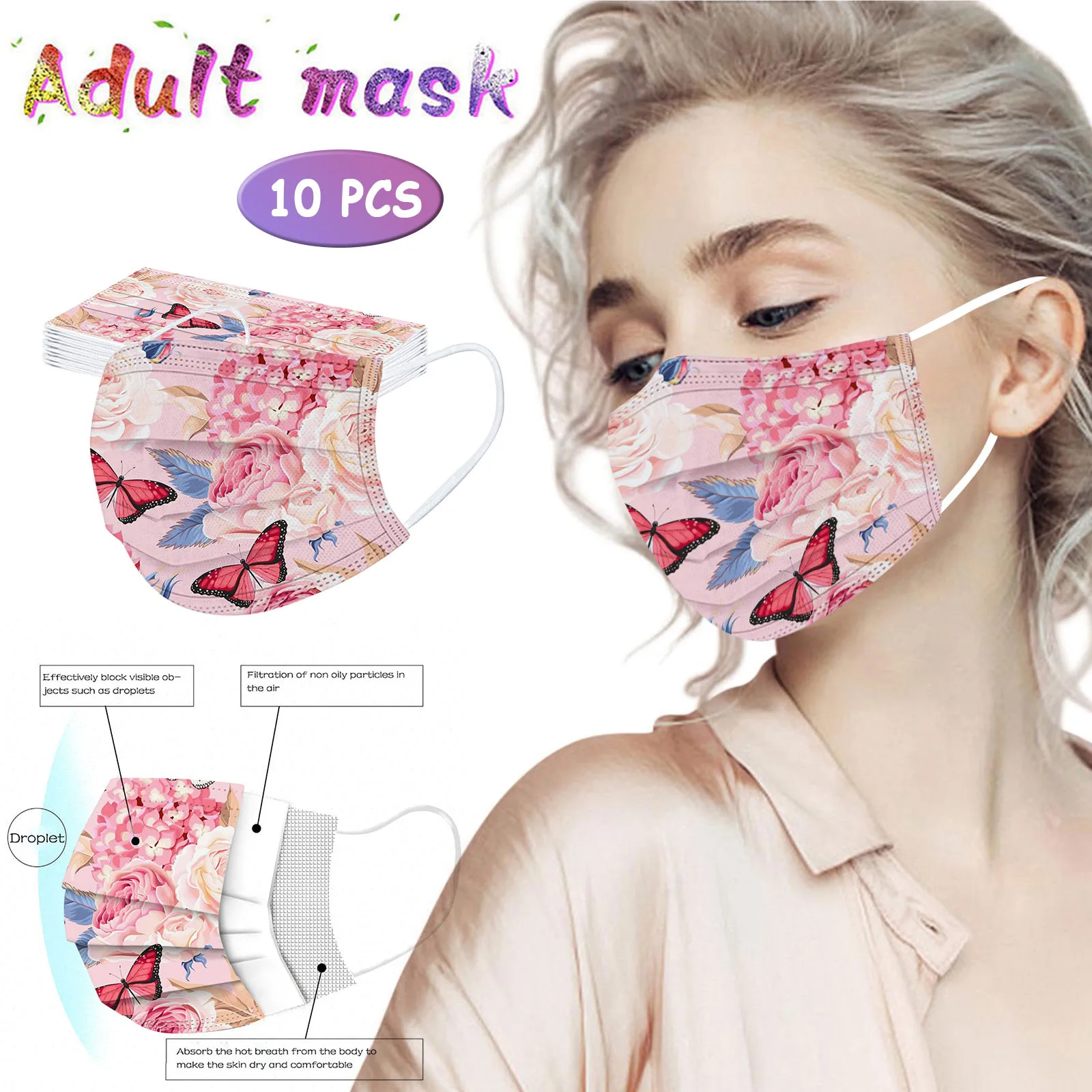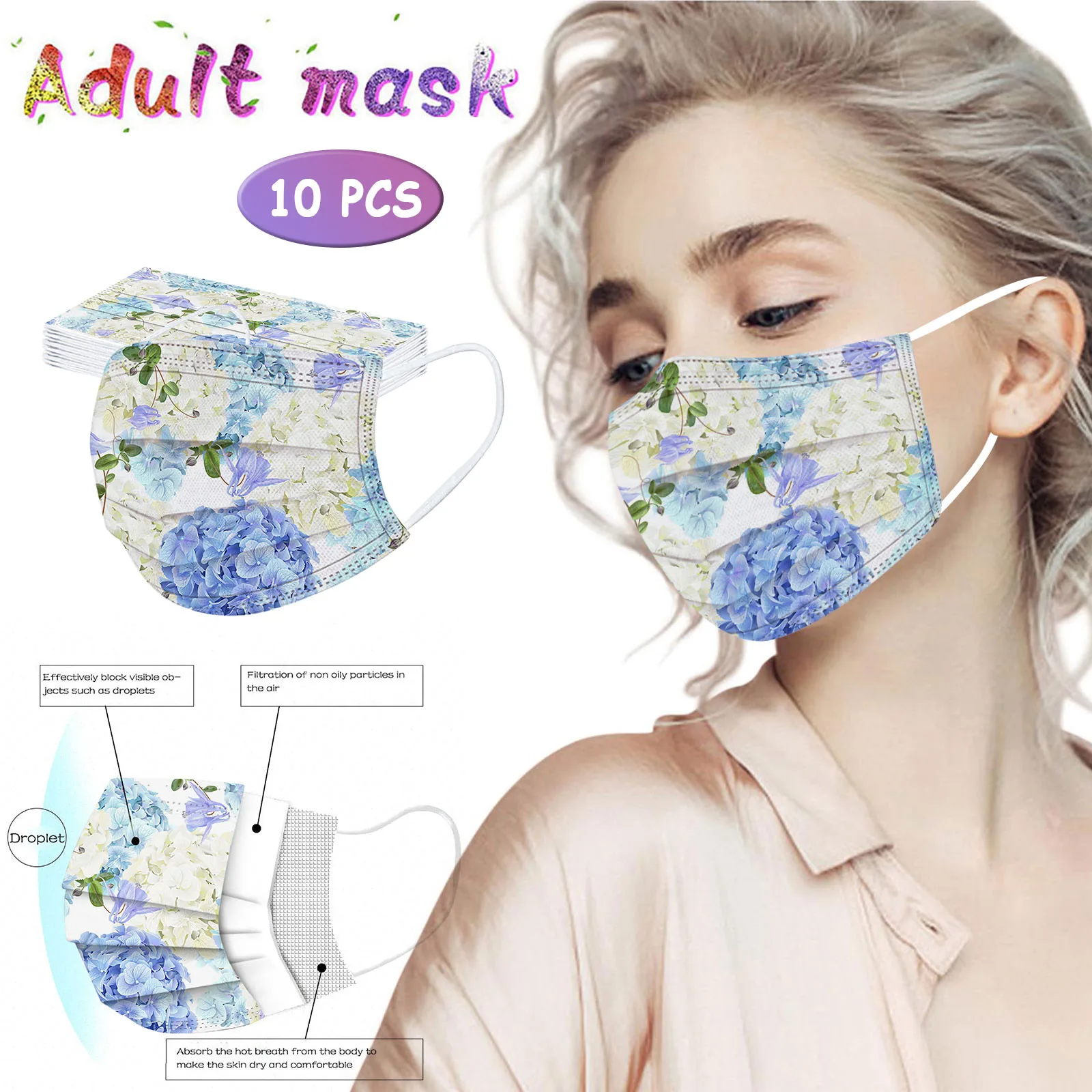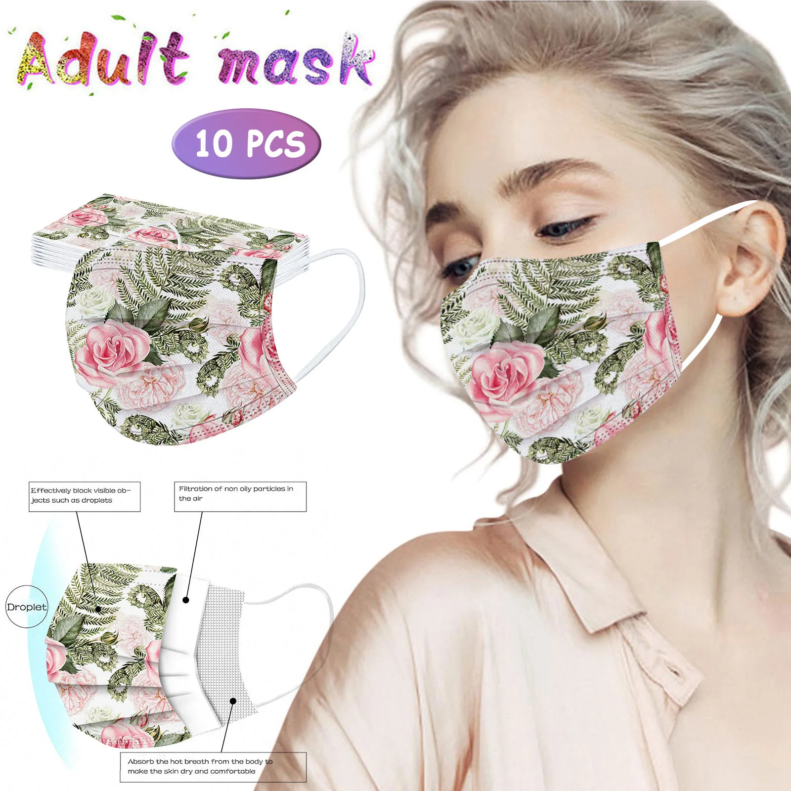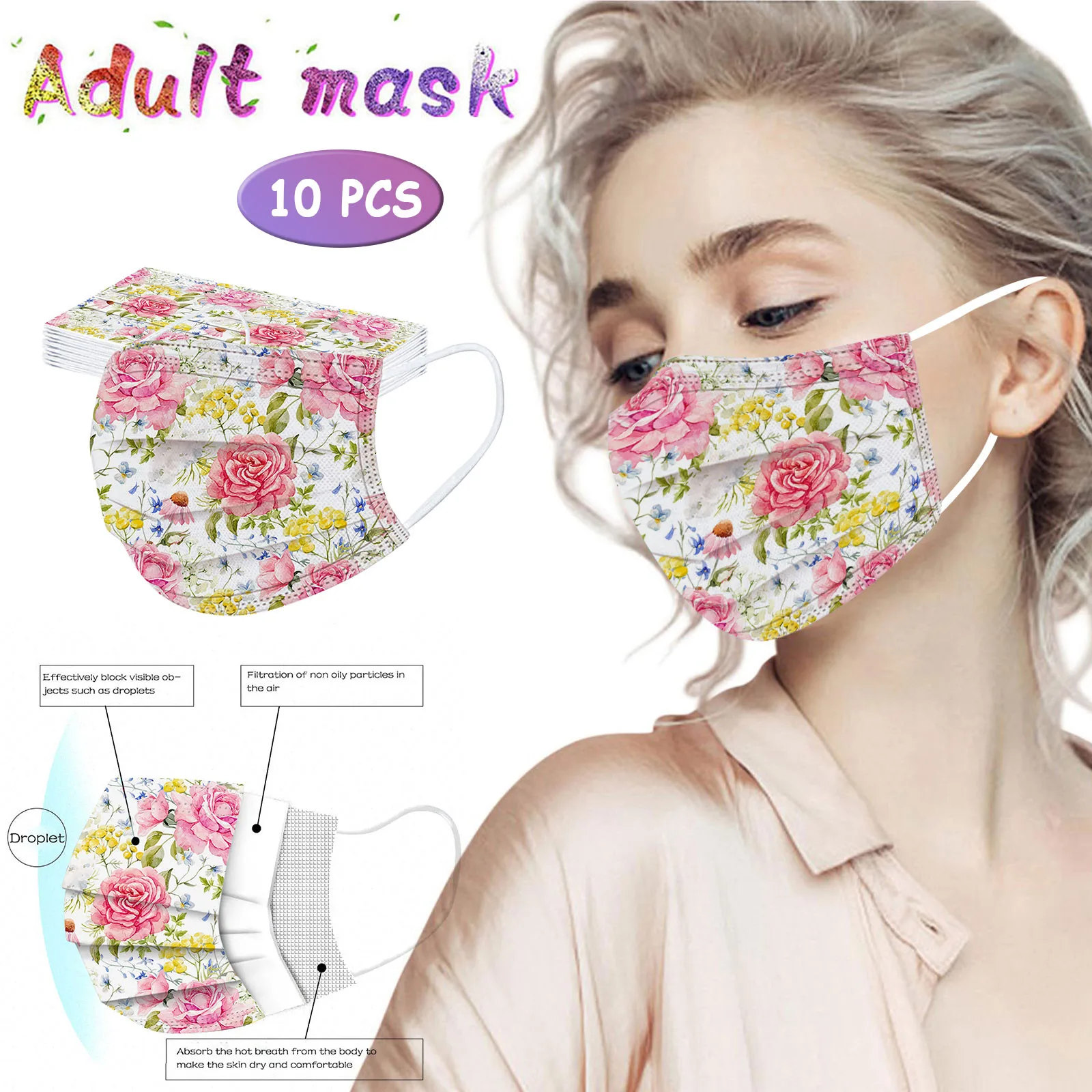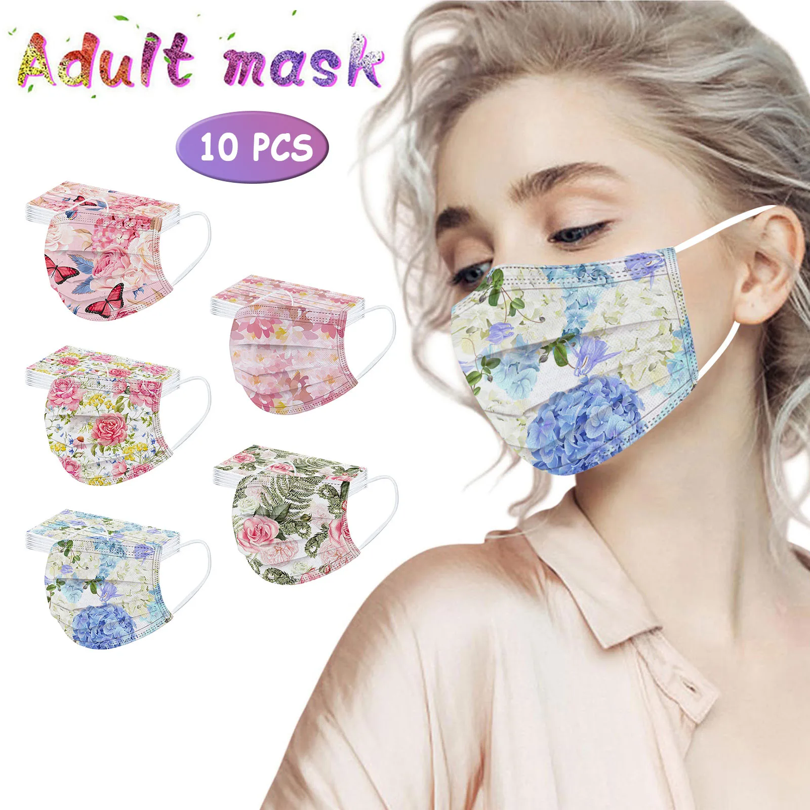 Модная одноразовая маска для лица, маска с цветочным принтом для взрослых, женская маска для лица с дизайном, маска для Хэллоуина, лица, маски