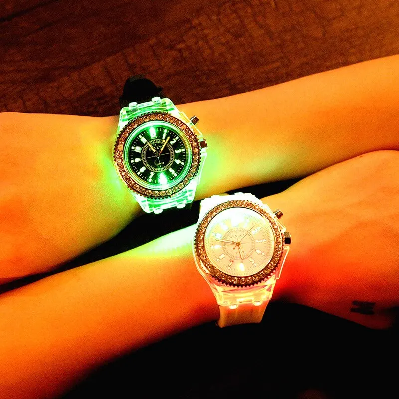 Светодиодный светильник, светящиеся часы для женщин, мужчин, мальчиков и девочек, силиконовые наручные часы, модные часы со стразами для детей, Relogio Saati