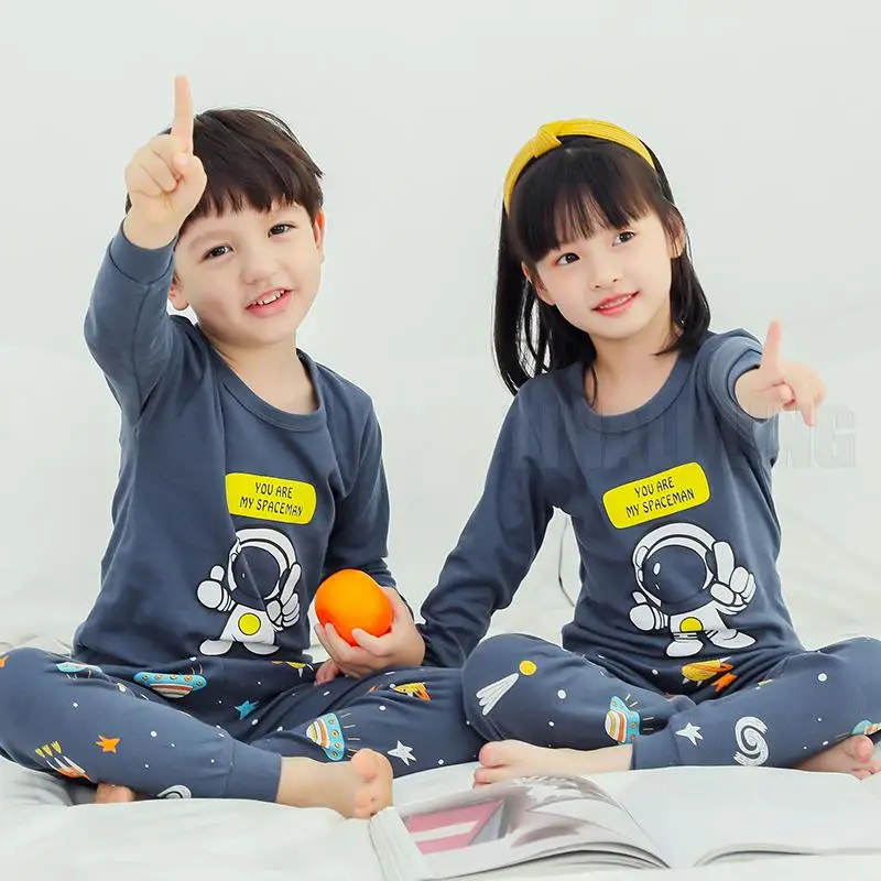 Пижама детская хлопковая с длинным рукавом и принтом в виде совы и астронавта