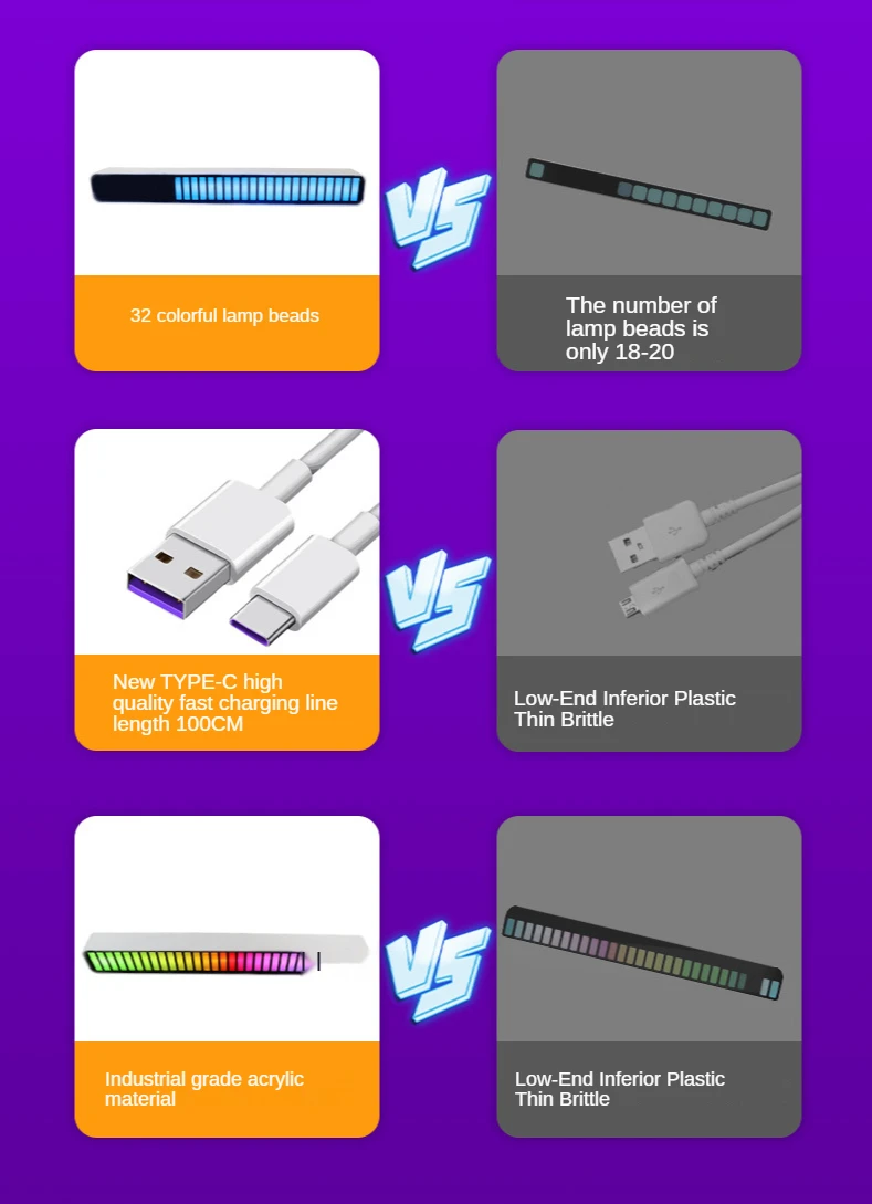 Материал: АБС + акрил + электронные компоненты Особенности:Пульт дистанционного управления APPВстроенный высокочувствительный микрофон (Голосовое управление)40 разноцветных лампочек7 режимов отображения4 уровня яркости регулируется5-уровневая регулировкой скорости18 цветовых режимов регулируетсяПоставляется с AGC автоматическим контролем усиленияЭксклюзивный интеллектуальный алгоритм деnoising, может использоваться в шумной средеПараметры продукта:Входное напряжение:> 5 в постоянного тока 1AВстроенный аккумулятор: ДаВходной интерфейс: USBЧастотная характеристика: 50-16 кГцИнструкции:Кнопка «режим/скорость»: короткое нажатие, чтобы включить режим «Белый»-выбор режима; Длительное нажатие, чтобы включить красный-Выберите 5 скоростейЦвет/яркий ключ: короткое нажатие, чтобы включить белый-Выберите цвет; Длинное нажатие, чтобы включить зеленый-Выберите 4 уровня яркостиНажмите две кнопки одновременно: Нажмите одновременно, чтобы включить синий-чтобы узнать спектр шума окружающей средыНажмите и удерживайте цвет одновременно при включении питания: Введите режим настройки усиленияВключение питания (только для модели аккумулятора): Нажмите кнопку цвета после выключения питанияВыключение (только для модели батареи): Держите лицо вниз в течение 3 секундУпаковочный листСветильник-1 шт.1 кабель для передачи данных1 х Руководство