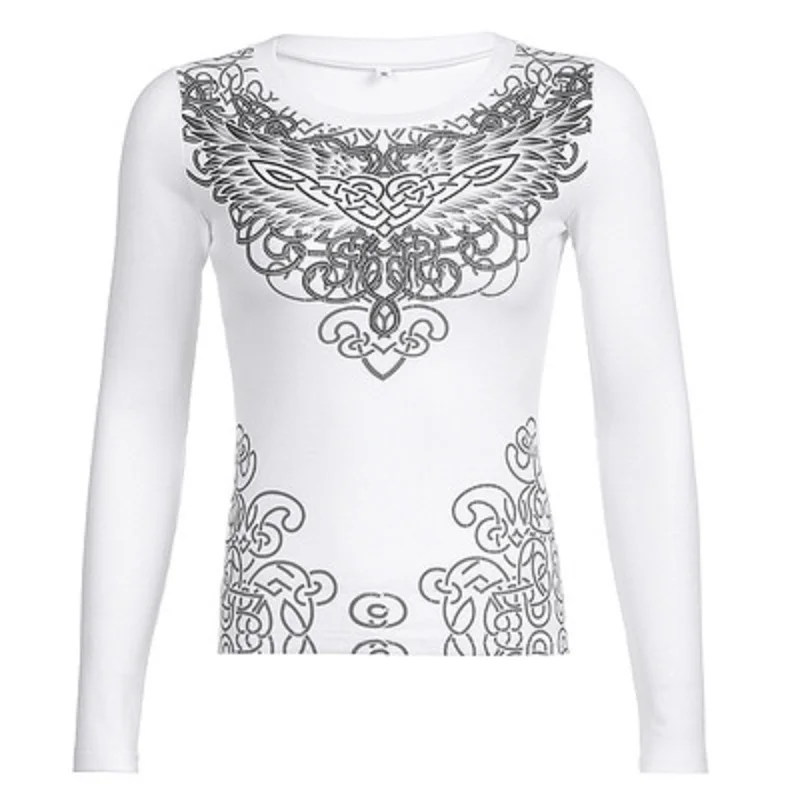 Женские футболки с принтом в готическом стиле, с длинным рукавом