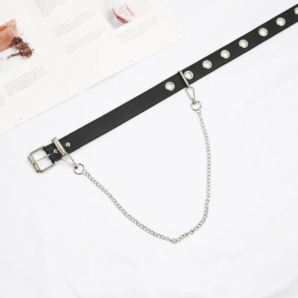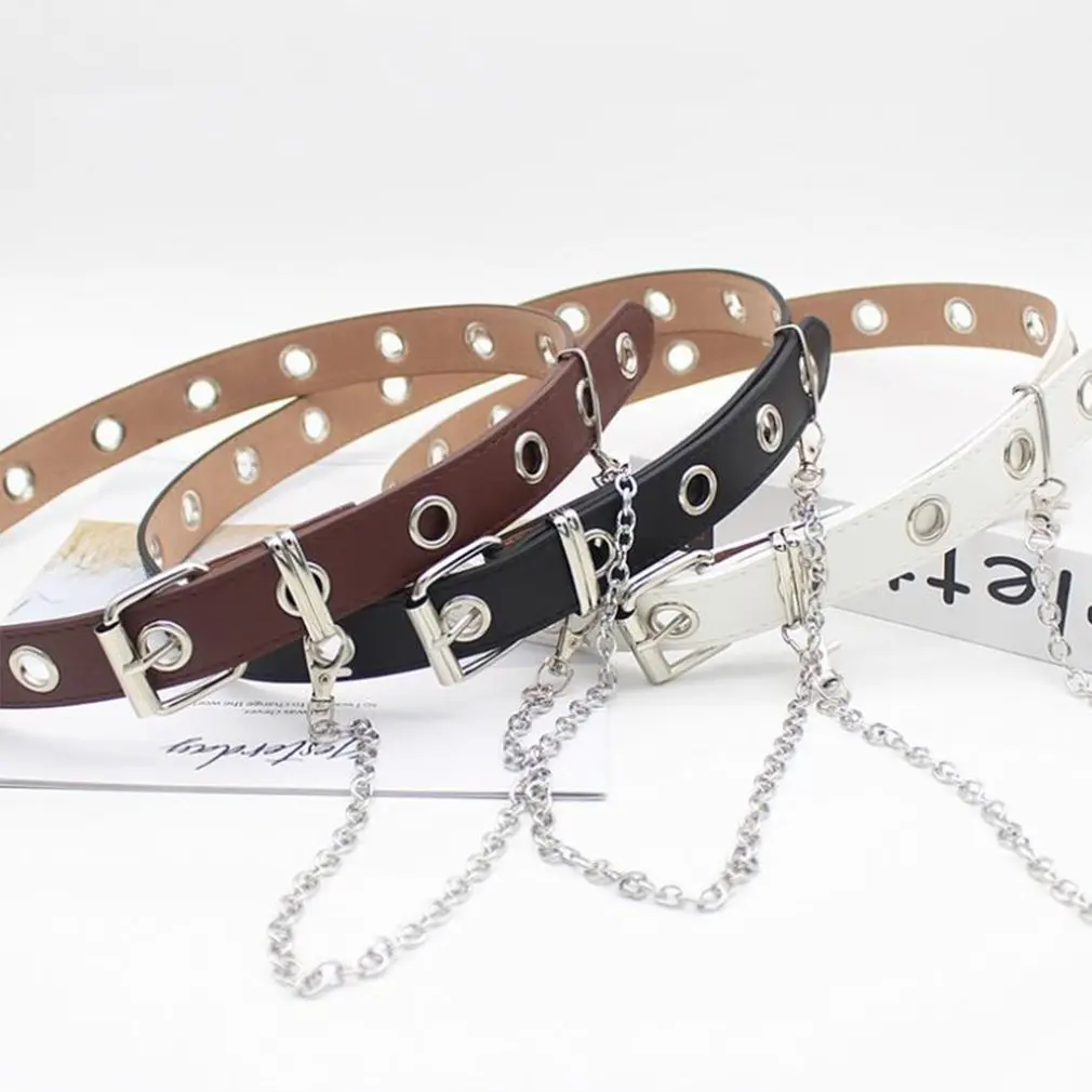Женский ремень в стиле панк с цепочкой, регулируемый двойнойОднорядный ремень с отверстиями, пояс с ушками, декоративные ремни 2021