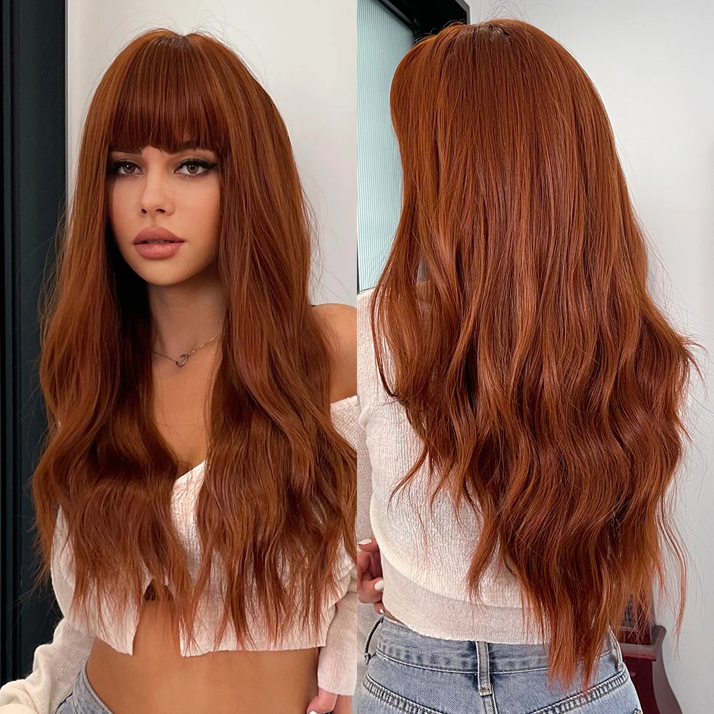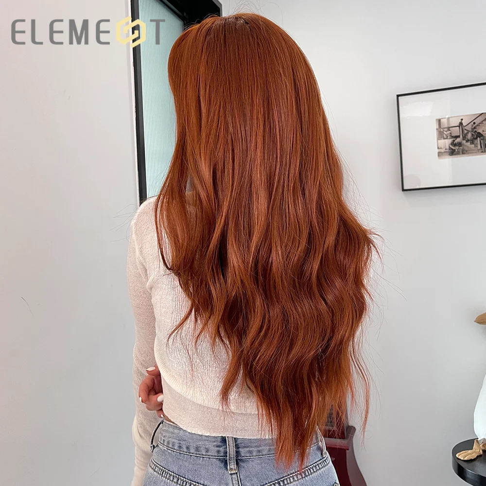 Парик Синтетический Element длинный волнистый с челкой, термостойкие кудрявые волосы для женщин, Повседневная Вечеринка, косплей, цвет коричневыйкрасныйвинный