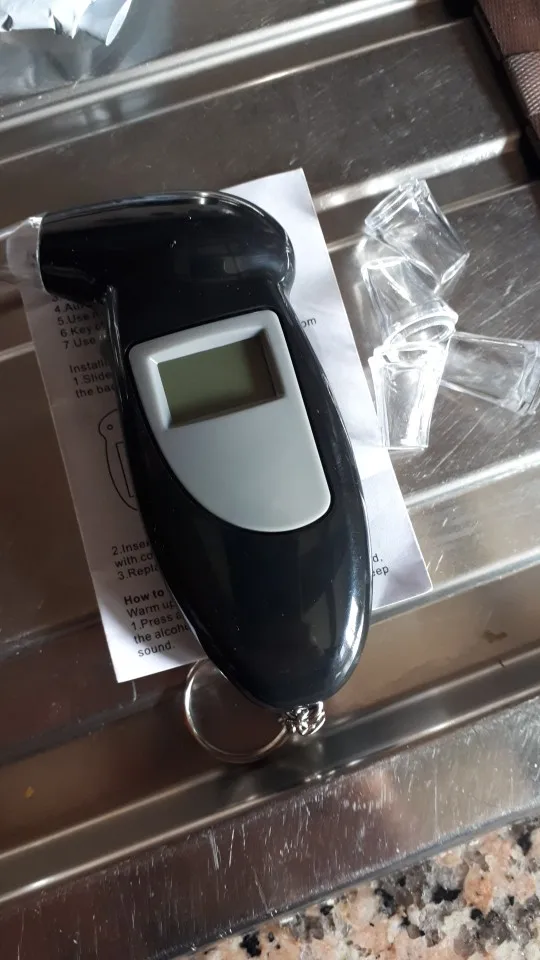 [Функция продукта]1. Цифровой дисплей результатов концентрации алкоголя с быстрым тоном2. Быстрое реагирование и восстановление3. Можно выбрать сигнальные точки4. Красная подсветка5. Автоматическое выключение и функция энергосбережения6. Мундштук можно заменить7. Цифровой Тестер дыхания алкоголя имеет брелок, который очень удобно носить с собой.Батарея: 2 ''aa'' щелочные батареи (не входят в комплект)Датчик: Усовершенствованный полупроводниковый оксид спиртаДиапазон: 0,00-0.19% BAC & 0,0-1,9g/l (или 0,00-0,95 мг/л BRAC)Точность: 0.01% BAC (0,1 г/л)Алкотестер или Алкотестер (портманто дыхания и анализатор/анализатор) является устройством для оценки содержания алкоголя в крови (BAC) из образца дыхания. Алкотестер является одним из самых доступных воздухопроницаемых. Его можно использовать в самых разных условиях, включая клинические тестовые приложения и для личного использования. Используются передовые Полупроводниковые технологии обнаружения алкоголя, чтобы быстро взять образец дыхания и обеспечить оценку содержания алкоголя в крови (BAC). Графический ЖК-дисплей покажет, насколько вы несущественны, является ли это опасным (более 0.05% bac), небезопасным (прибл. 0.02% bac) или безопасно (под 0.02% bac). Отображает «предупреждение», когда результат находится в пределах 0.02% - 0.05%, отображает «болтается», когда результат равен или выше 0.05%.