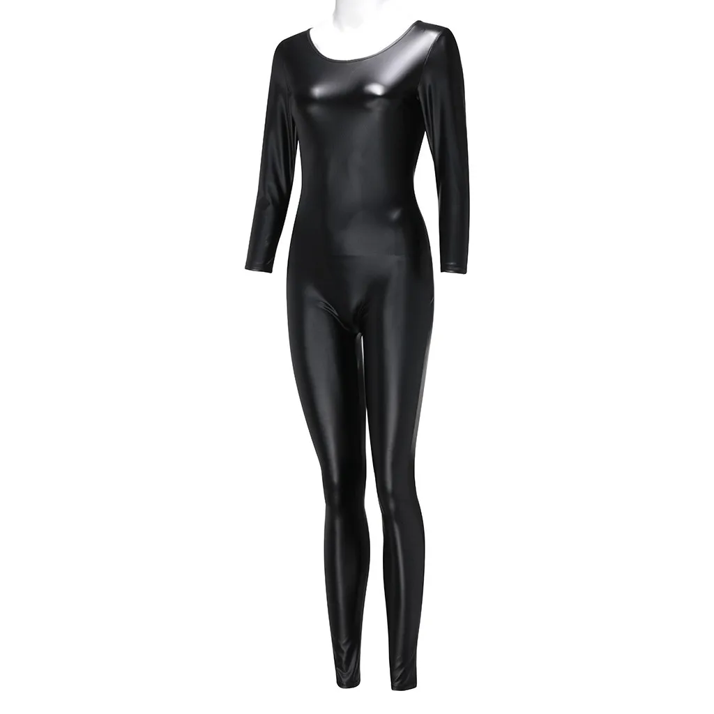 Женский комбинезон из искусственной кожи, с длинным рукавом и невид...