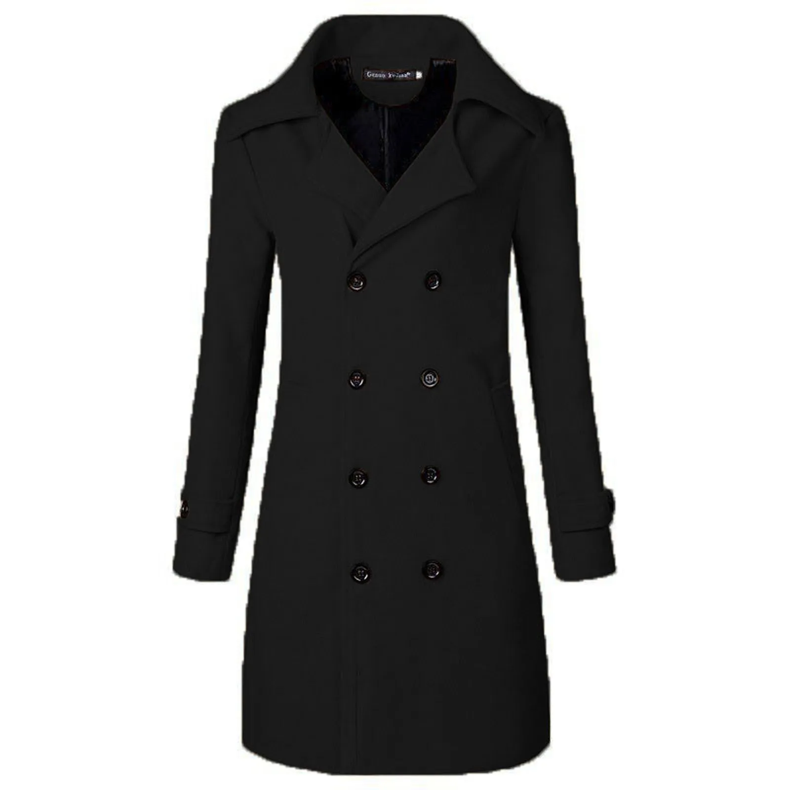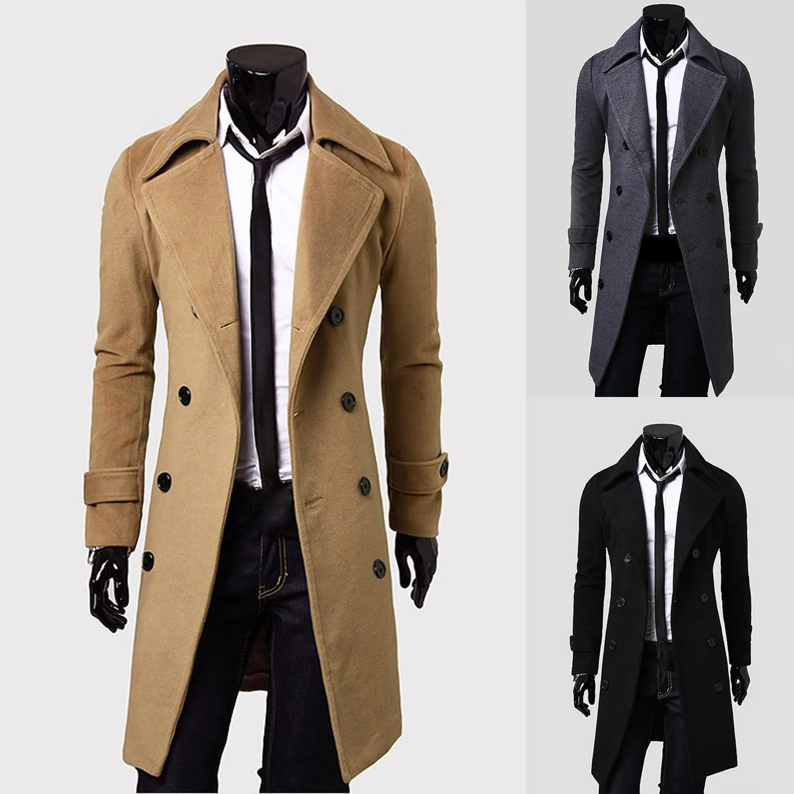 Модное пальто, мужское пальто, зимнее теплое однотонное длинное пальто-тренчкот, деловое повседневное пальто, мужской тренчкот, Прямая поставка