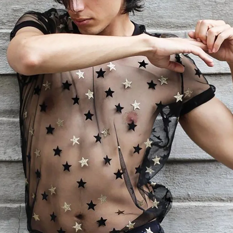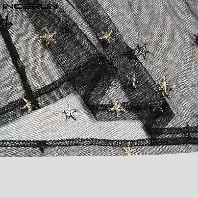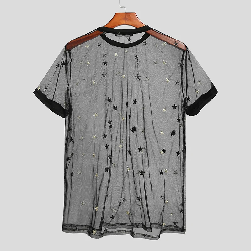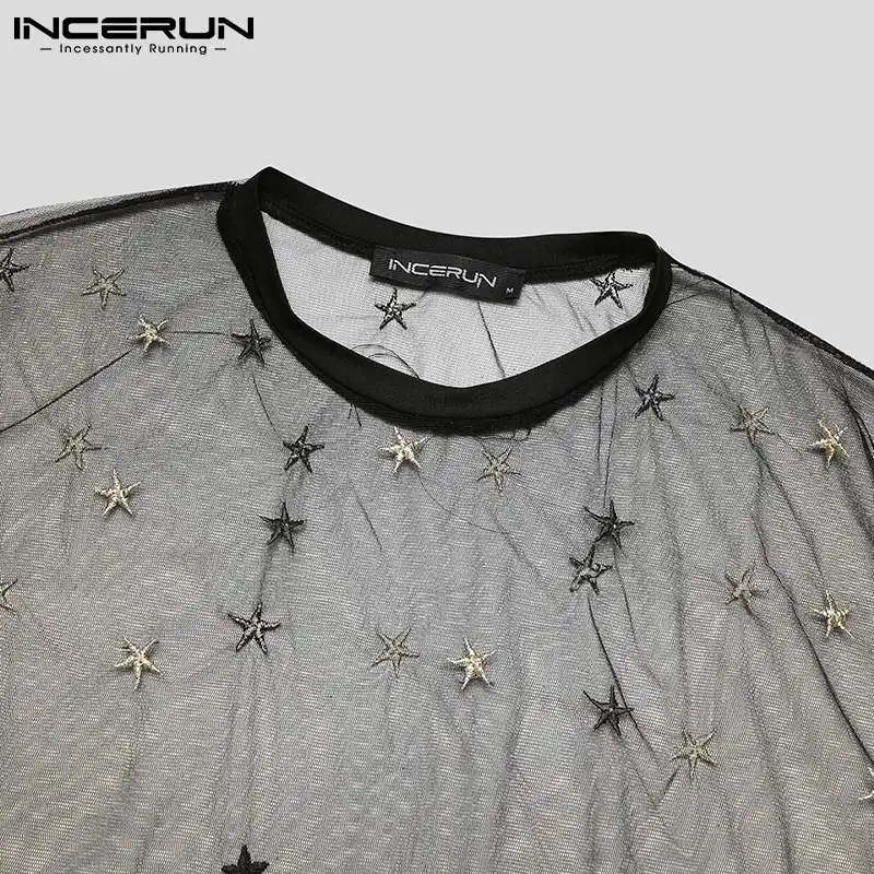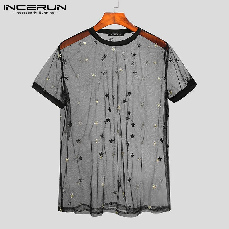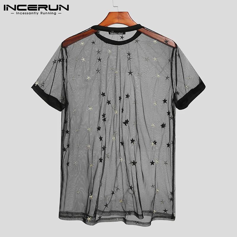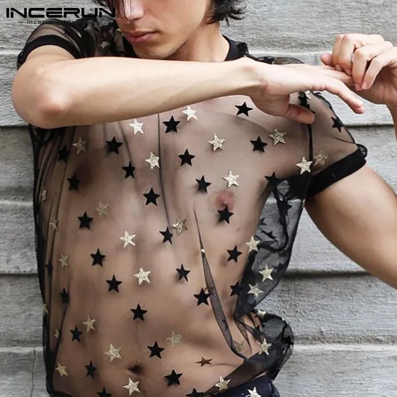 INCERUN 2022 Мужская футболка с сетчатым прозрачным принтом топы с круглым вырезом и коротким рукавом Нижнее белье уличная одежда для вечеринки ночного клуба пикантные рубашки